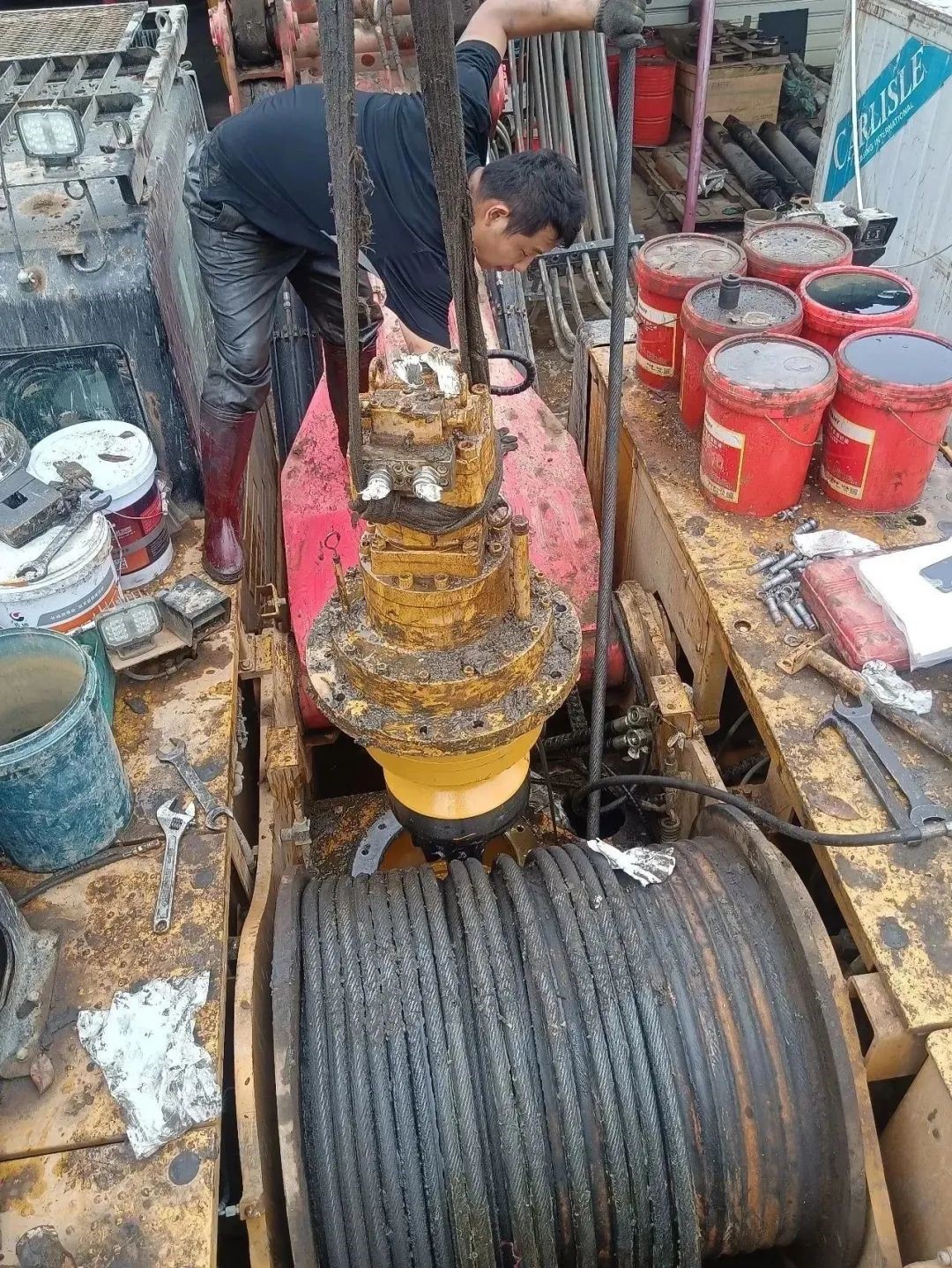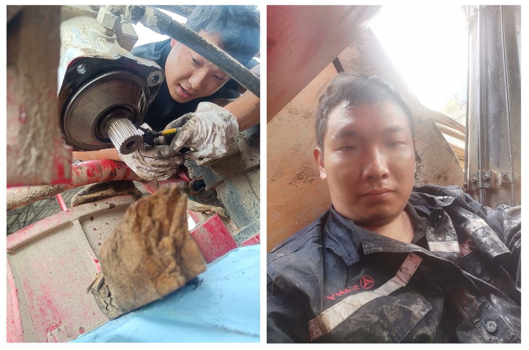现场满是烂泥和液压油,韩亮没有丝毫犹豫直接钻进了底盘下面为客户检修设备,经过2人交替排查,4个小时后,设备维修正常,乔航的裤子就像刚从液压油里泡过拿出来一样,泛着油亮,汗水也湿透了整个上衣。