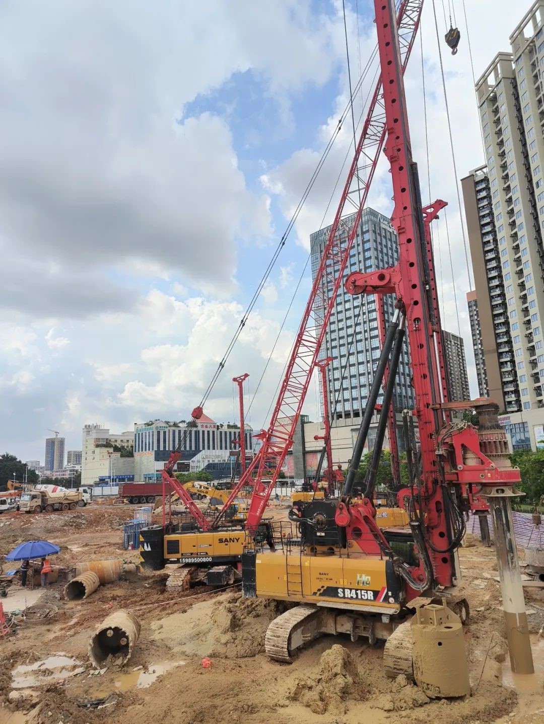 深圳市观澜石角头工业区正在进行城市更新项目,其中13台好体育综合app下载旋挖钻机密集林立,以SR485为首。好体育综合app下载“4字头”大型旋挖钻机凭借强悍的施工能力、出色的入岩表现、稳定的持续输出,助力“观澜观湖街道观城第一期城市更新”项目的快速进展。