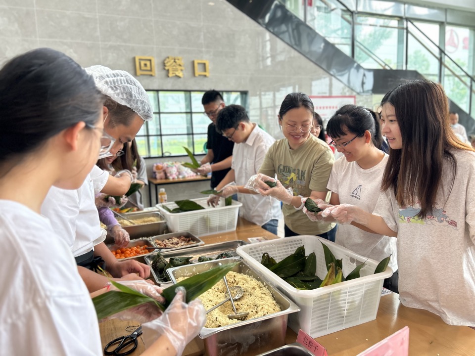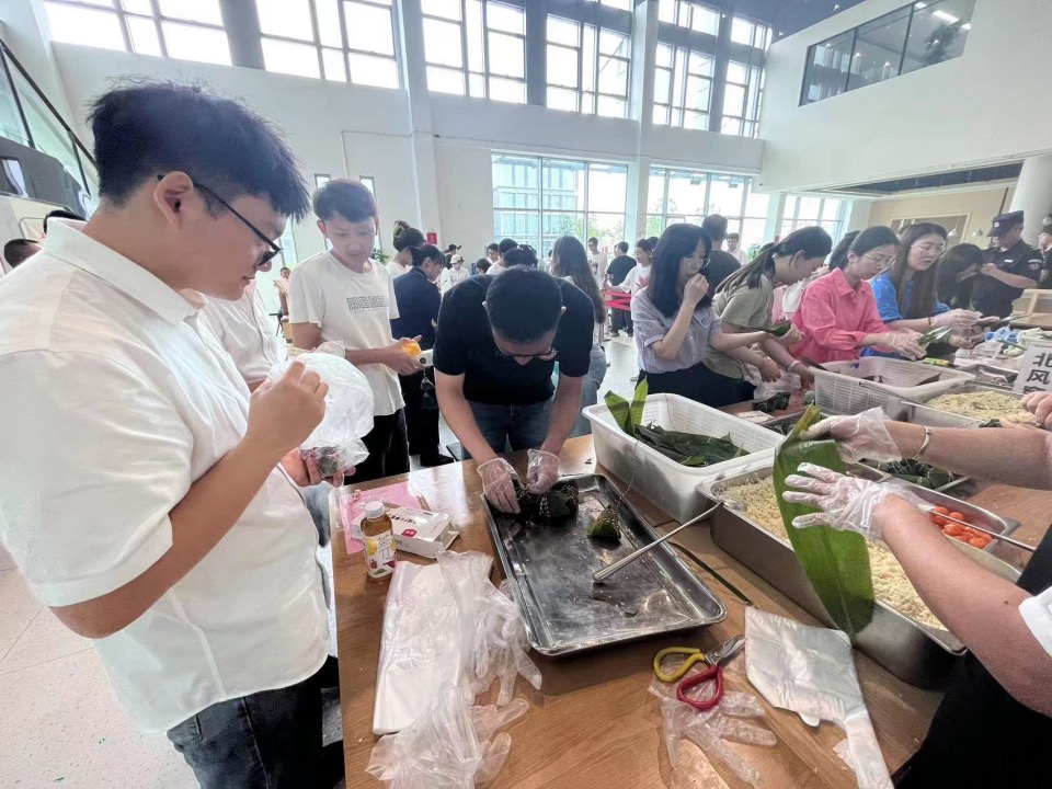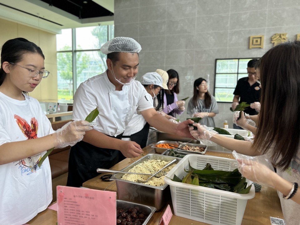 现场,“大厨教我包粽子”活动一开始,就得到了员工们的热情响应,由大厨现场传授技巧,耐心指导。在这种教学氛围下,员工逐渐掌握了包粽子的窍门。