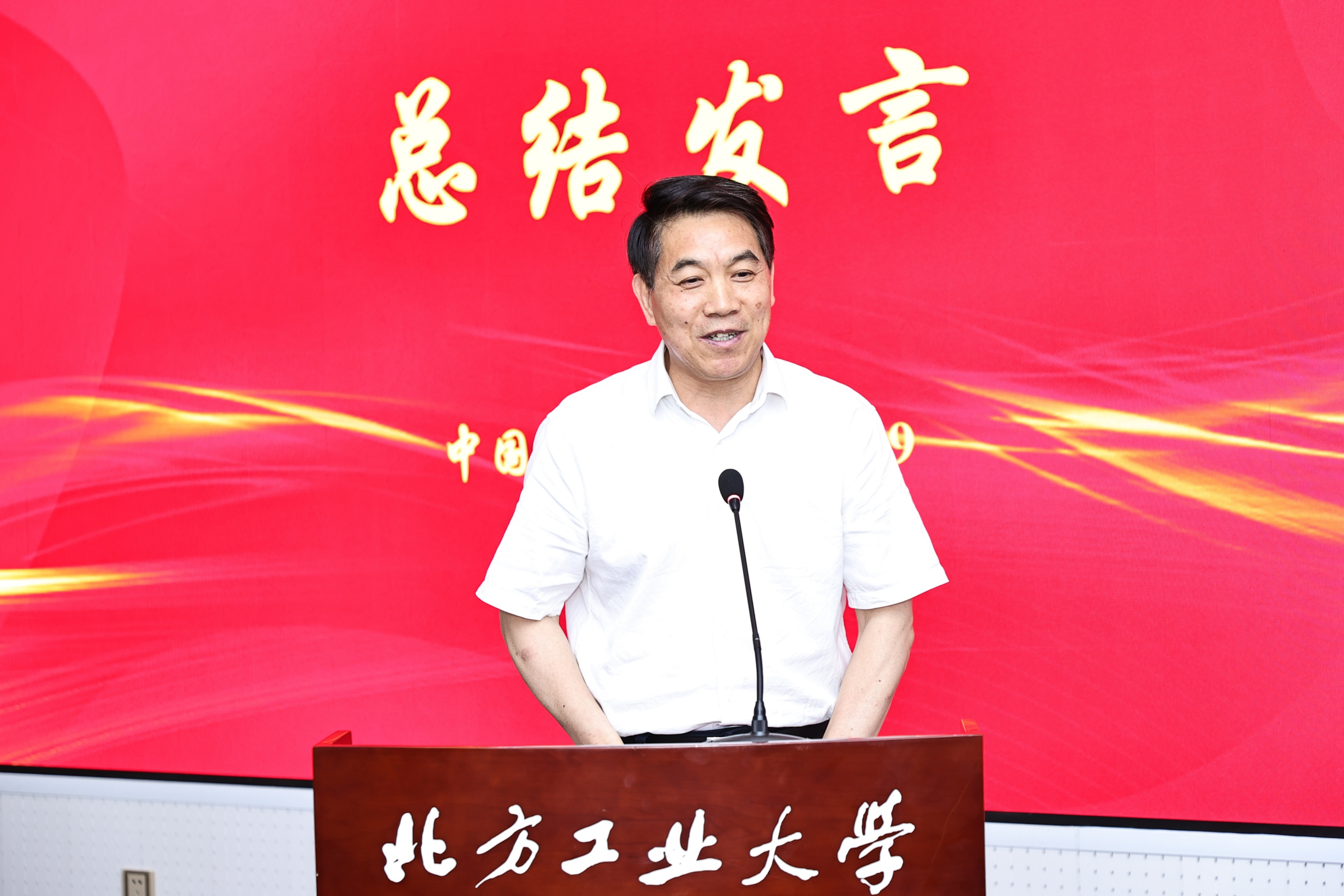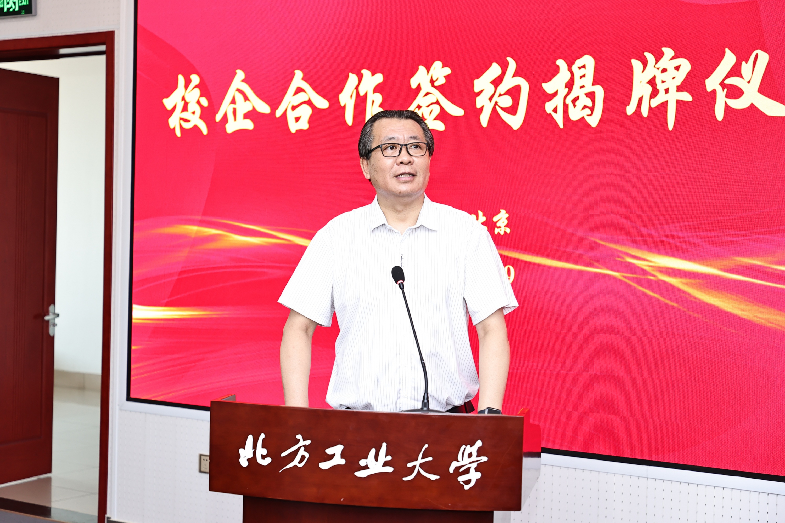 北方工业大学校长张立峰致辞时,对签约企业代表及专家的到来表示热烈的欢迎,对签约企业长期支持学校科研工作、学科专业建设和人才培养表示诚挚的感谢。张立峰详细介绍了北方工业大学的发展历史、“老工科、新内涵”的发展特色和校企合作愿景。