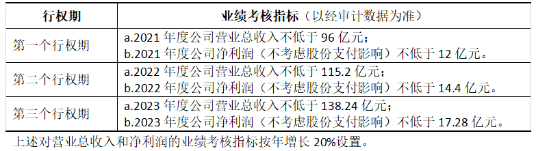 2021年度,公司营业总收入为101.75亿元、净利润为15.91亿元,满足行权条件,第一个行权期于2022年9月完成行权登记,行权数量为1,269.85万股。