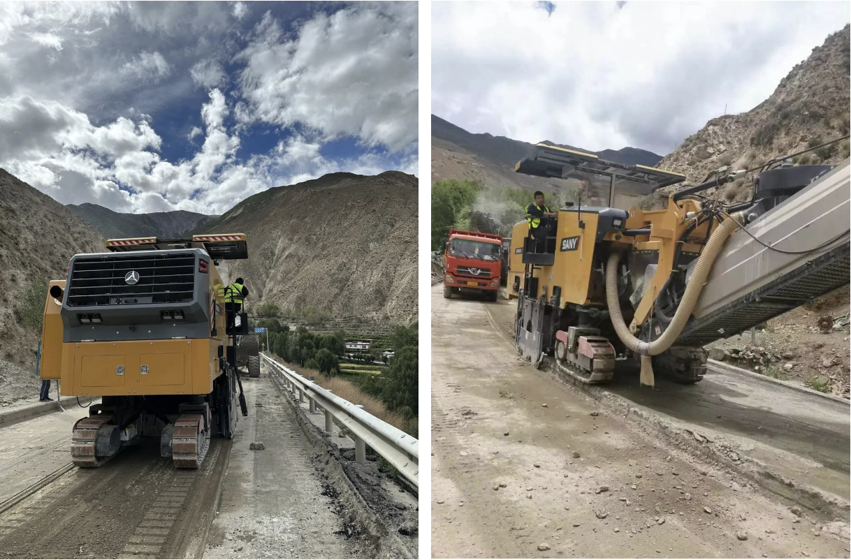 在雪域高原区域,随着海拔的逐步升高,就连徒步行走都相当于内地的负重前行,而设备来到高原,性能也难免有所降低。本次需要施工的路段路面硬度高且夹杂着大量石头,对铣刨刀头损耗较大,加上道路坡陡弯多,对铣刨机的稳定性有着较高的要求。