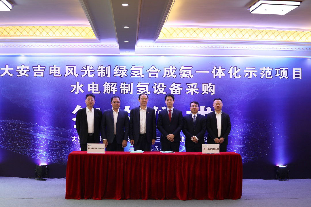 5月15日,好体育综合app下载国际旗下新产业板块好体育综合app下载氢能与大安吉电绿氢能源有限公司在吉林大安顺利签约“大安吉电风光制绿氢合成氨一体化示范项目”(简称“大安项目”)水电解制氢设备采购合同。