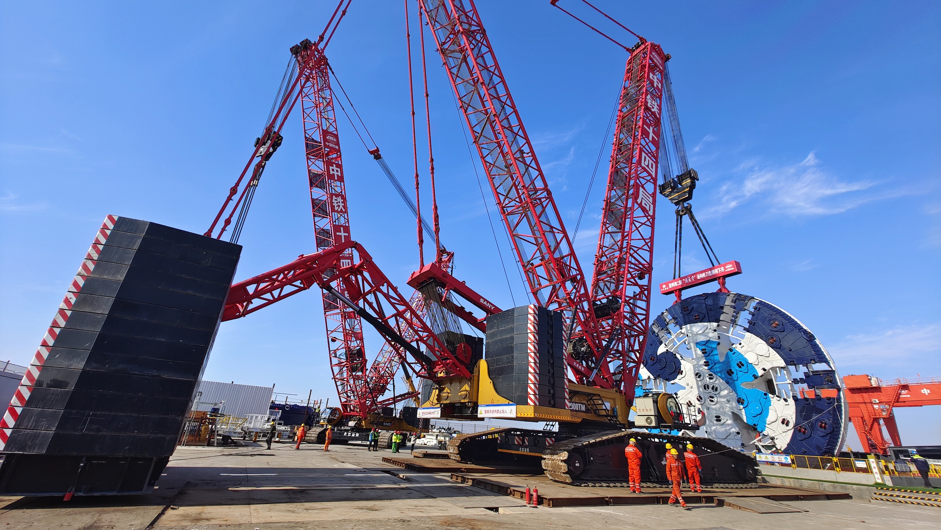 近日,在世界最长海底公路隧道——胶州湾第二海底隧道,重达600吨的“海天号”盾构机刀盘顺利完成下井,即将进入钻进工作。