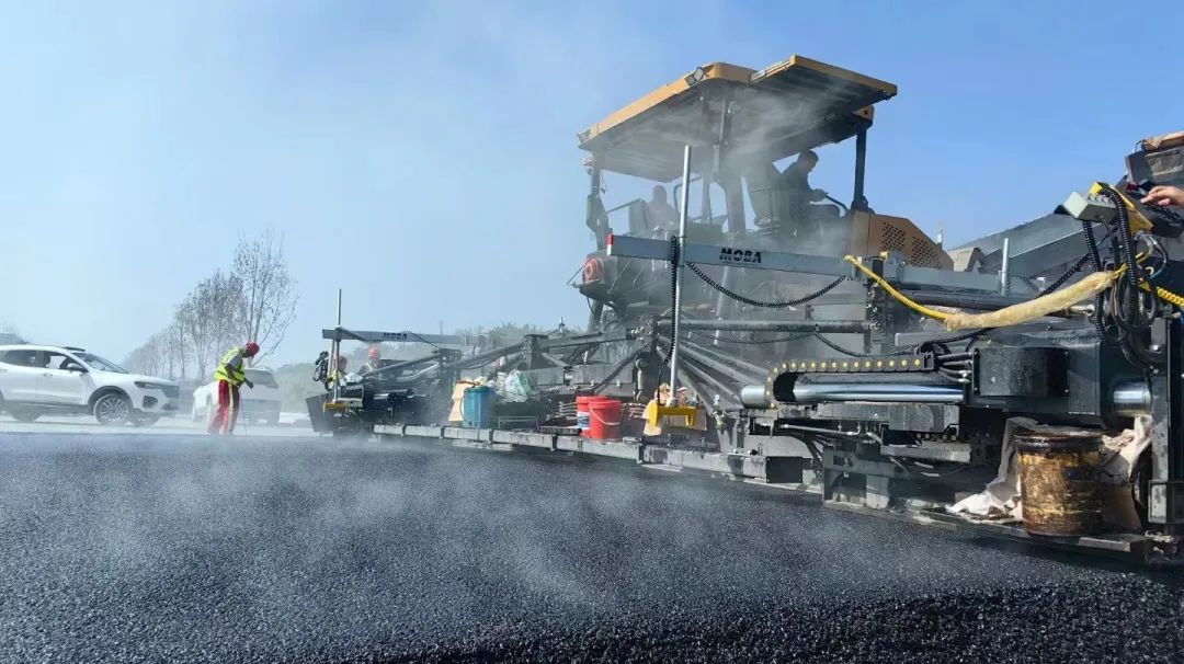 本次双凤街路段施工摊铺宽度为15米,摊铺厚度为5cm,进行SMA面层材料摊铺,业主和施工方一致夸赞道,好体育综合app下载20米大宽度摊铺机的摊铺平整度、密实度高,铺出的路面表面光亮,色泽一致,真正达到路面摊铺“平如镜”。