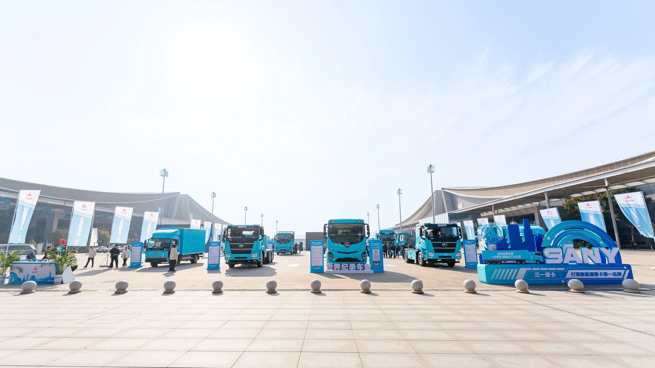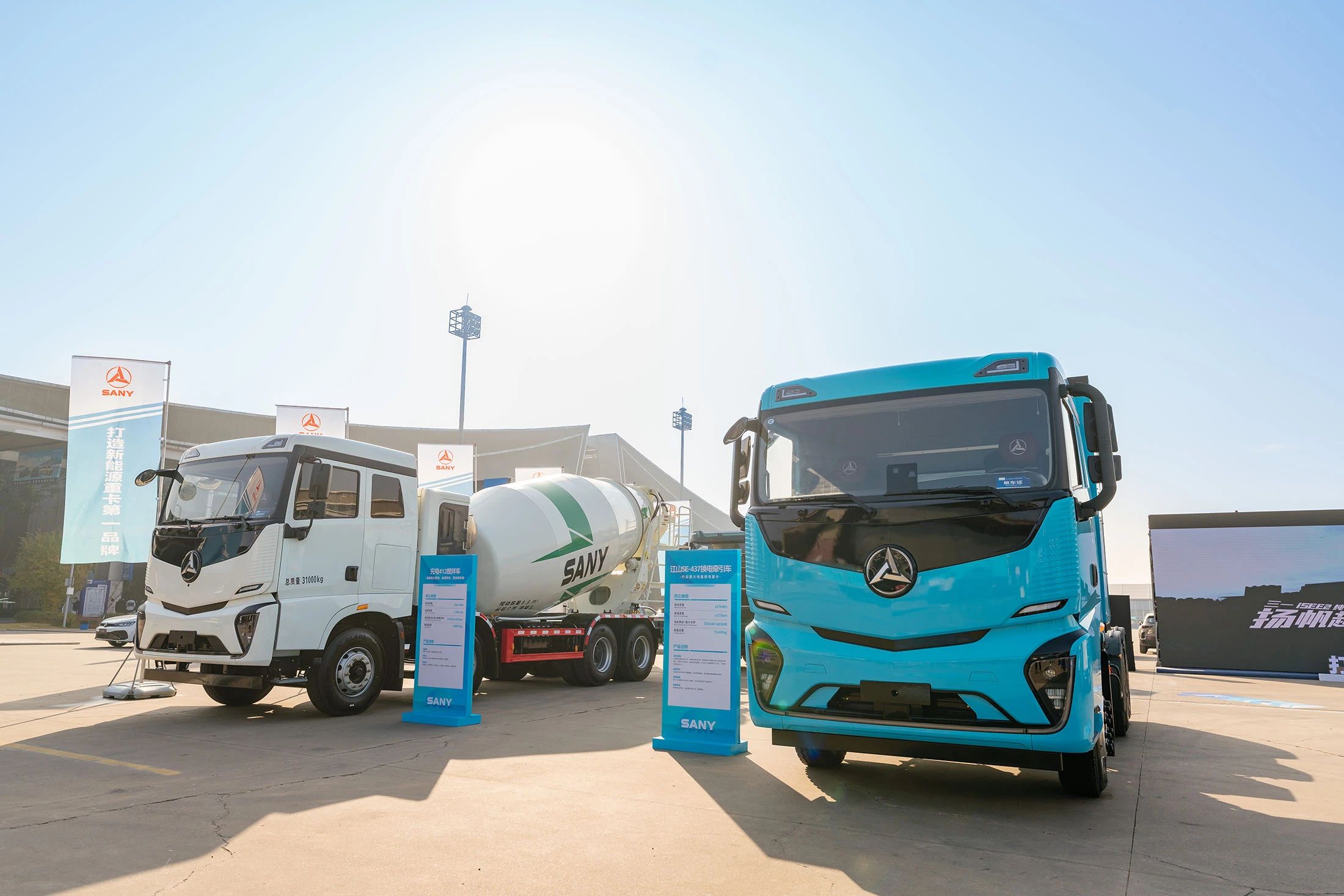好体育综合app下载专属2000㎡户外展区,共展出10台好体育综合app下载新能源代表车型,涵盖电动牵引车、自卸车、搅拌车、轻卡以及氢燃料牵引车。