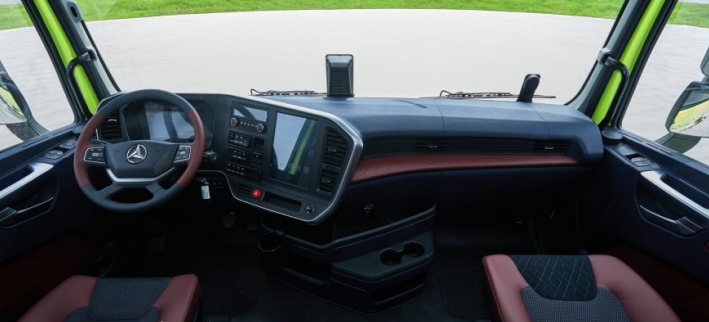 全新环抱式新能源专用智能座舱,超广角视野加360环视,时刻保证驾驶员的安全视野。另外,新产品还拥有850mm超大卧铺,有效减轻司乘人员疲劳,12.1寸智能中控屏更智能,能保证车辆更安全。