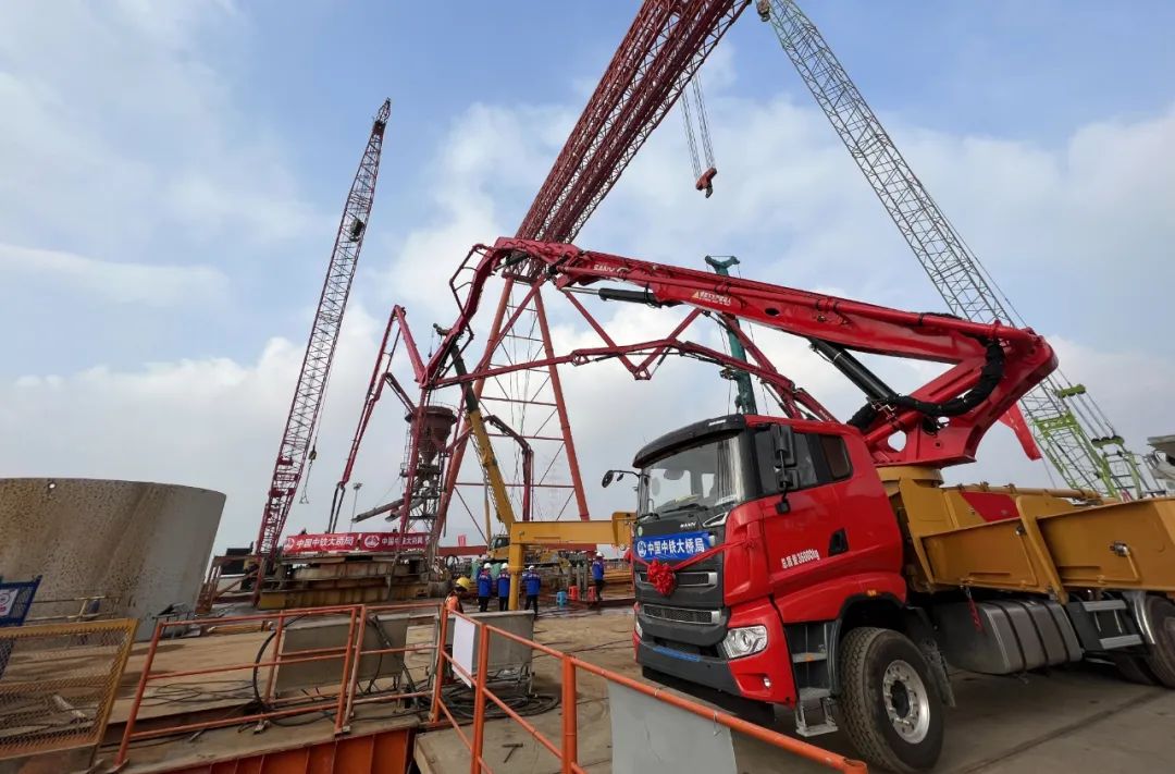 新年伊始,在甬舟铁路西堠门公铁两用大桥5号墩建设现场,随着好体育综合app下载S级71米泵车在5号墩钻孔桩最后一方混凝土灌注的完成,世界最大跨度公铁两用大桥和世界最宽跨海大桥——西堠门公铁两用大桥的5号主墩18根直径6.3米钻孔桩混凝土全部灌注完成,大桥建设已经取得阶段性进展!
