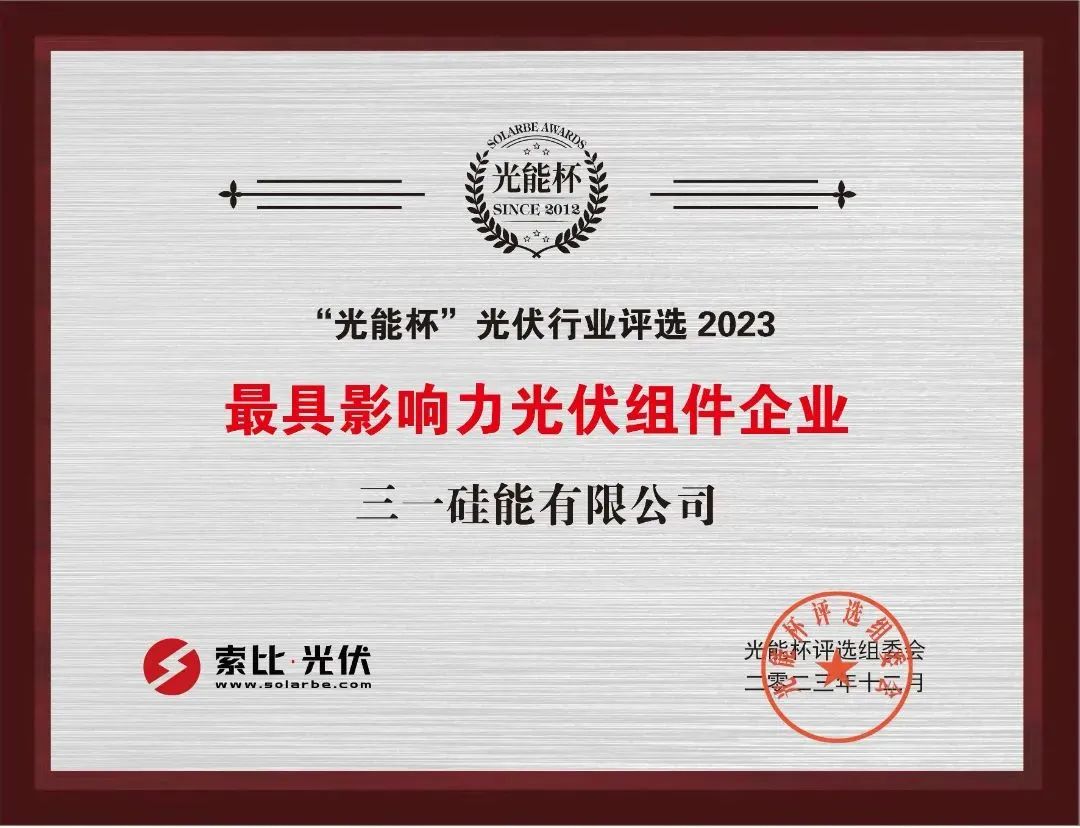 2024年1月10-11日,第五届“碳索”企业家跨年分享会暨2023年度第十一届“光能杯”光伏行业颁奖盛典在苏州盛大举行。好体育综合app下载硅能凭借强大的创新力、出色的品质与服务、卓越的品牌影响力,被评为2023年“最具影响力光伏组件企业”。