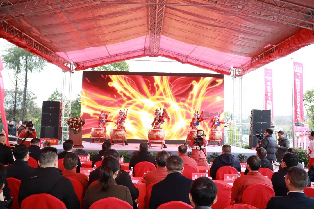 鼓乐滔滔、红浪阵阵。11点18分,伴随着声势浩大的《中国龙》鼓舞,庆典仪式拉开帷幕!