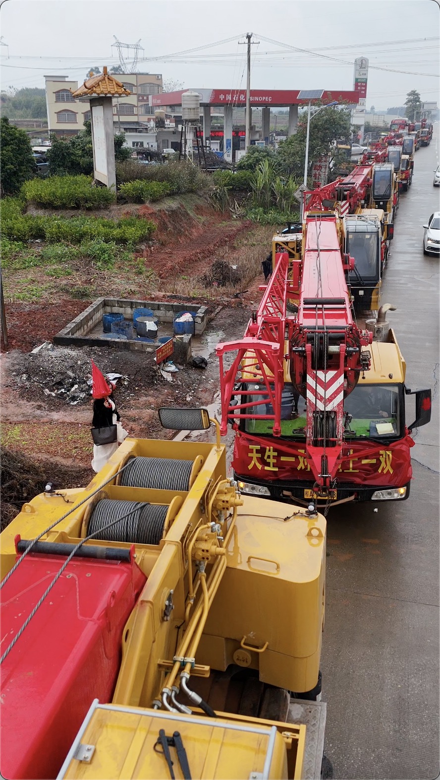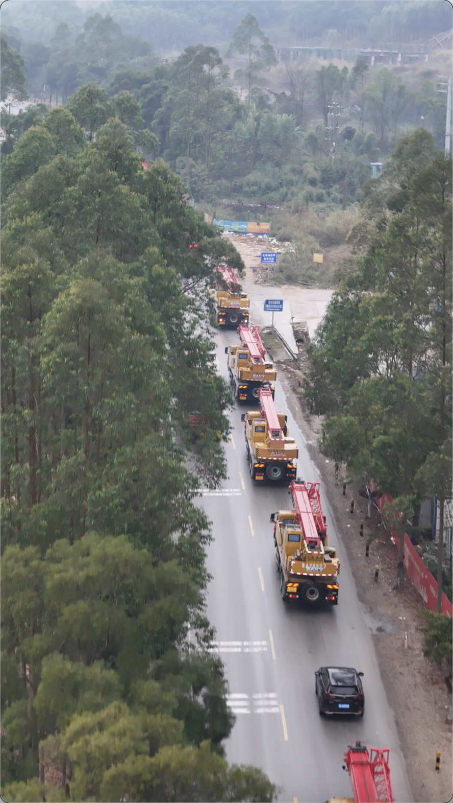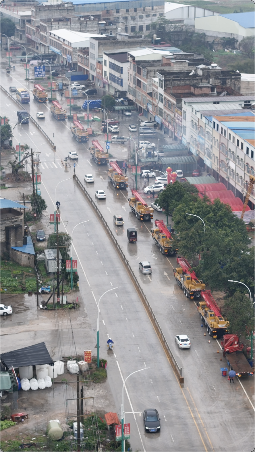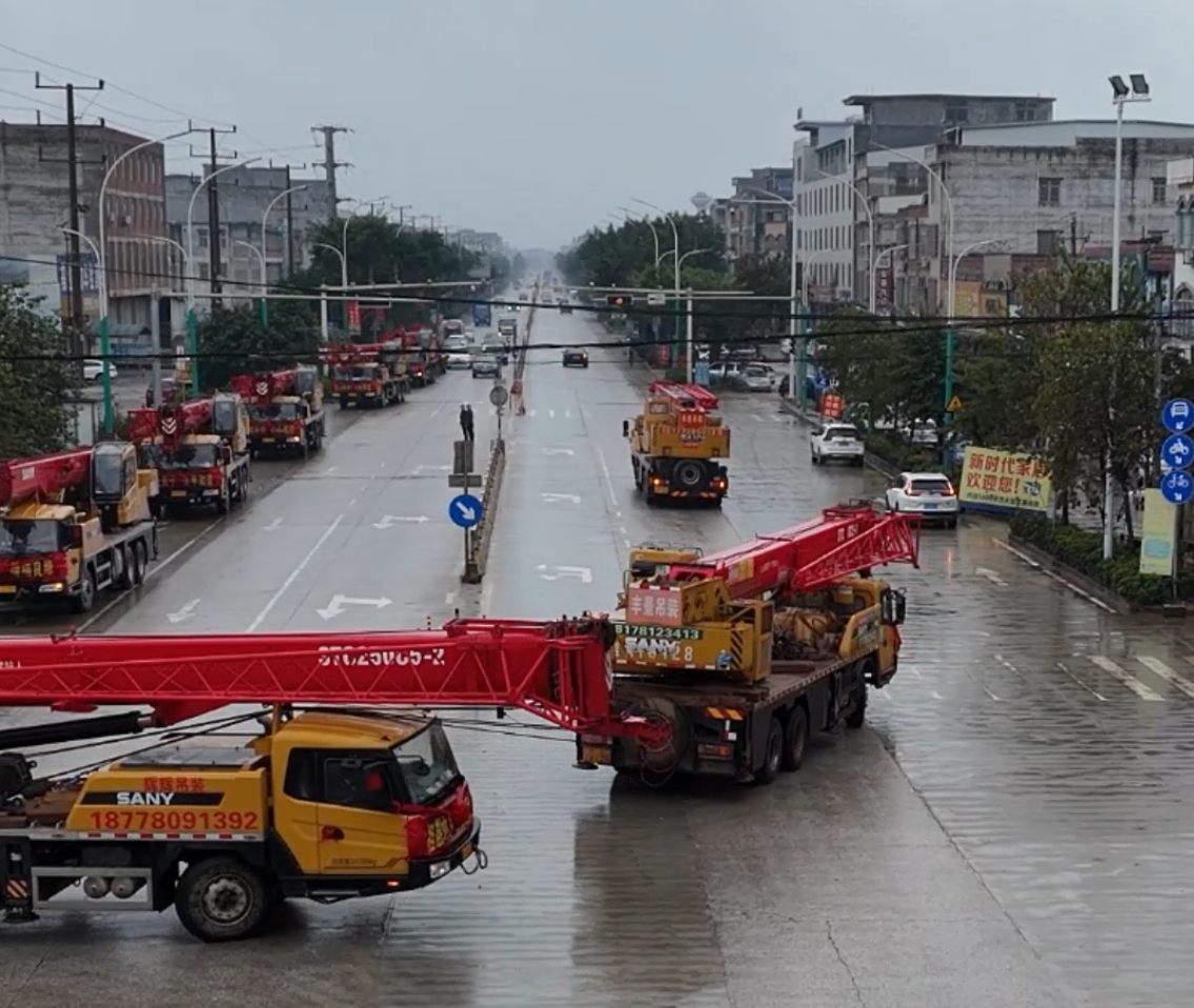 近日,广西横州县的街头上出现了一列特别的车队:9台好体育综合app下载起重机一字排开,车头装点着醒目的大红花,既喜庆又霸气。原来,这道独特的风景线,是广西横县辉辉吊装公司的老板黎遗辉的迎亲队伍。