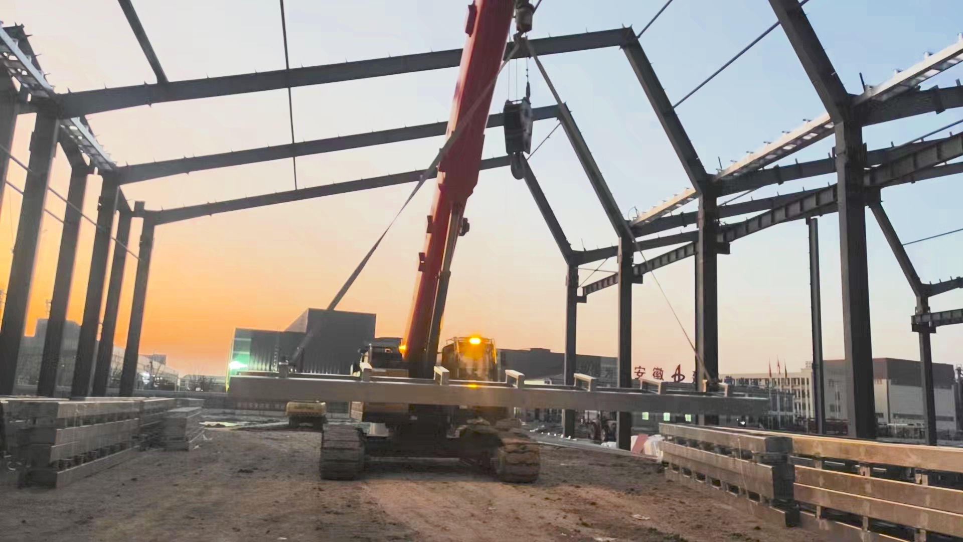 龚根卓介绍:“在前往蚌埠市考察施工场地的时候,我就发现现场泥泞不堪,环境比较恶劣。我手上其实有几台汽车吊,用汽车吊来吊载钢梁,其实不是不可以,但会花费大量但时间在平整土地和挪车上面,这样一来,施工效率会大幅下降,而且会消耗很多不必要的人力物力。如果考虑桁架臂起重机,进入厂房后又不够灵活,没办法伸缩臂。”