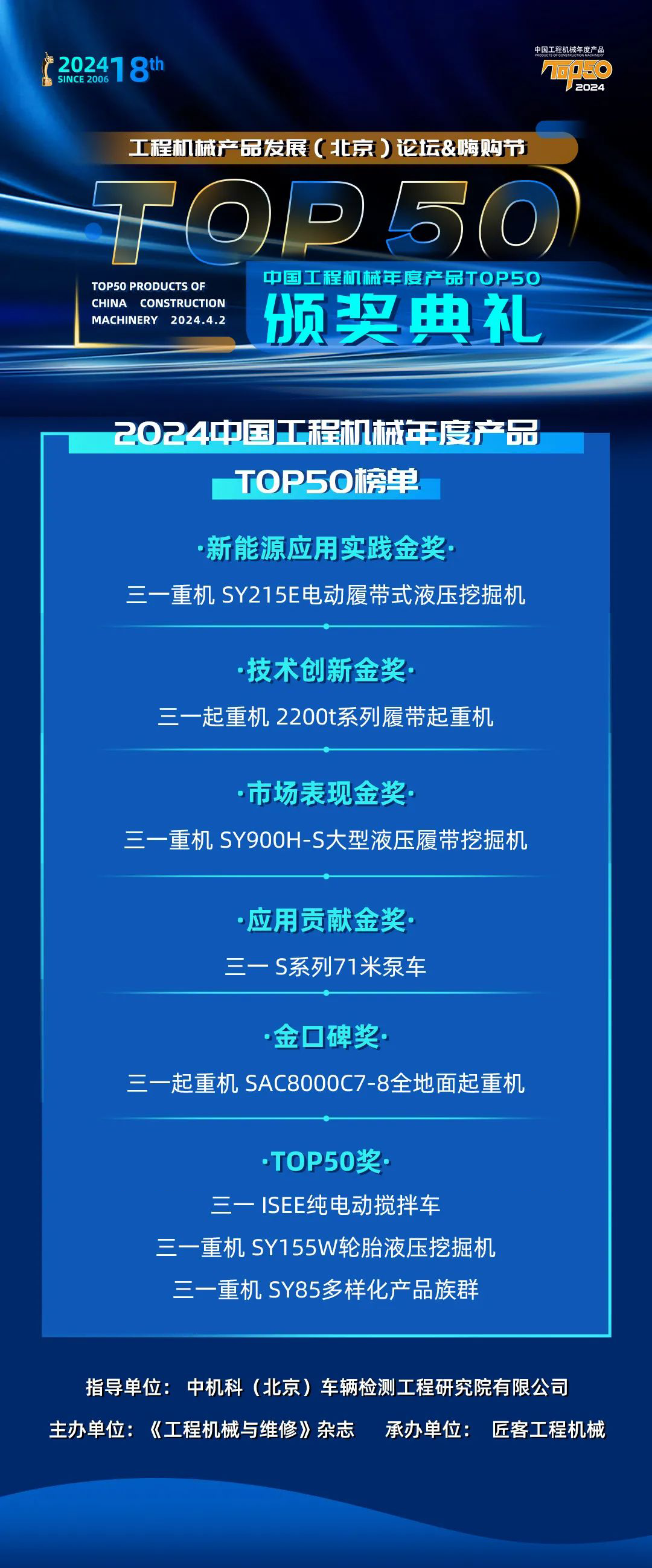 中国工程机械年度产品top50评选活动始于2006年,现已成为中国工程机械市场产品发展的风向标,代表了中国工程机械行业最新、最高成果。