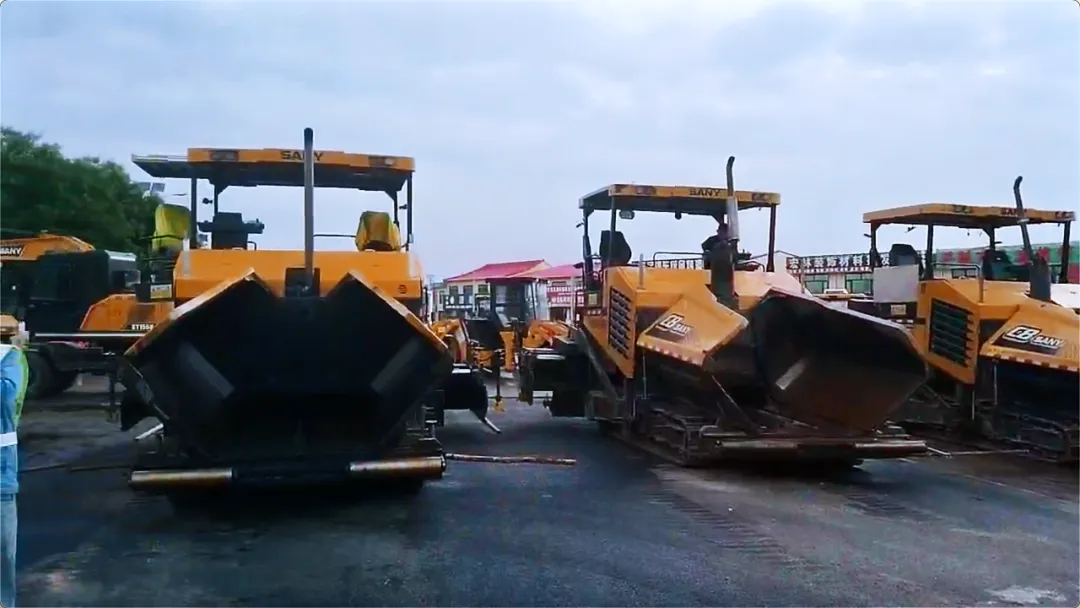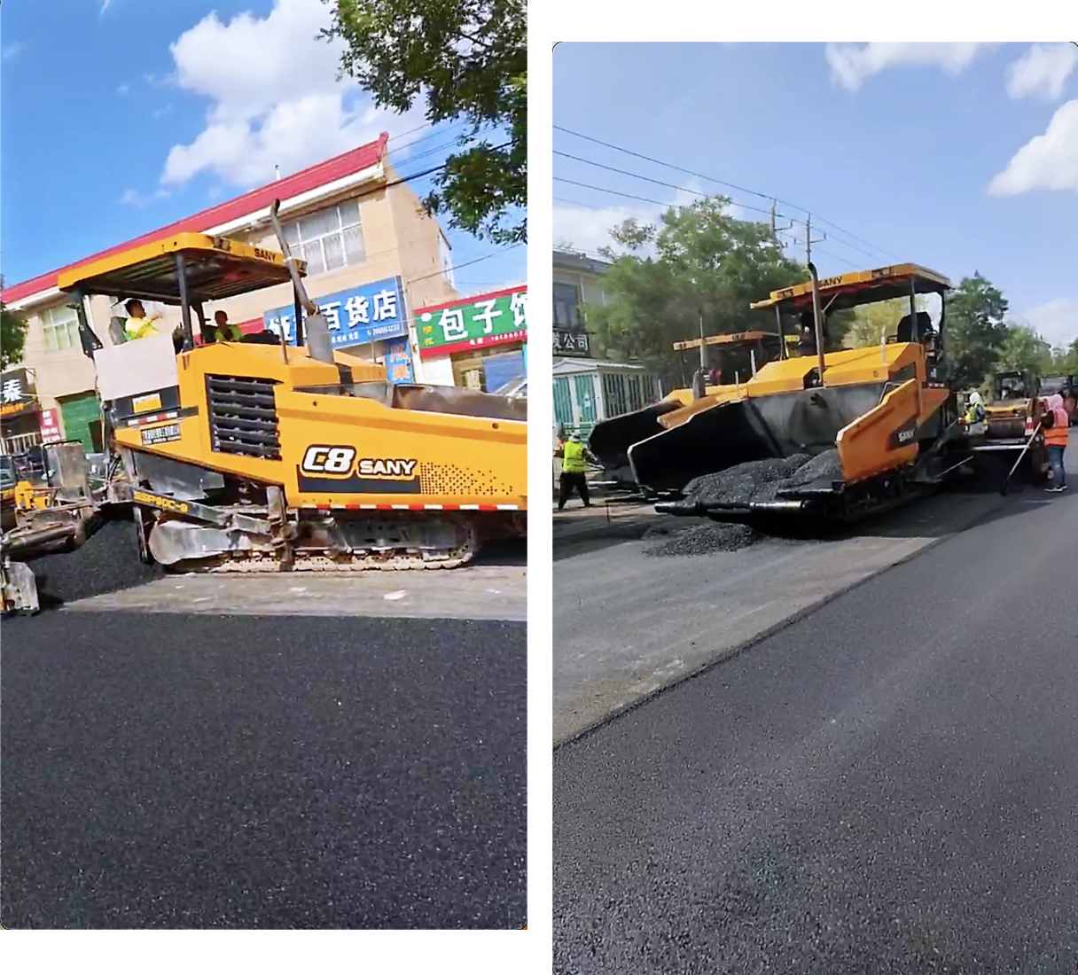 在本次宁夏七营镇主街道的改造项目中,好体育综合app下载的设备身影贯穿其中,摊铺机、压路机、挖掘机等工程机械齐聚一堂,其中更有C8、C10两代摊铺机四机联铺“名场面”引来一众路人惊叹围观,四台摊铺机齐头并进,光亮的黑色路面自熨平板后倾泻而出,滚烫的沥青接触路面后升腾起一阵白烟,在蓝天白云下绘成一幅乡村振兴的美好画卷。