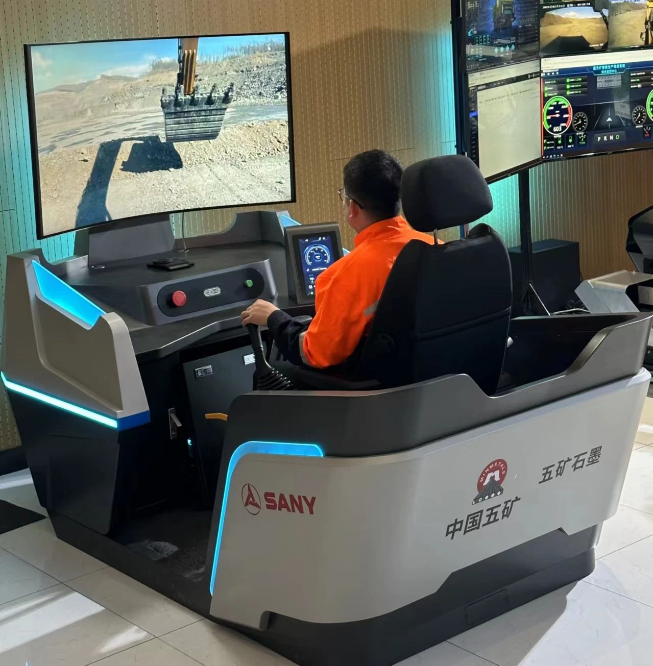 依托遥控舱所构建的虚拟培训系统。具备传统挖机的真实操作手感,通过安全化的培训模式,能够加快新员工上岗的进程。