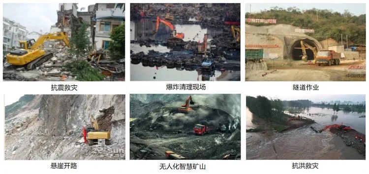 基于遥控操作平台,除了在智慧矿山、无人化码头等场景中进行作业之外,遥控挖掘机在政府应急抢险救援以及部队探挖销未爆炸弹等方面也发挥着至关重要的作用。