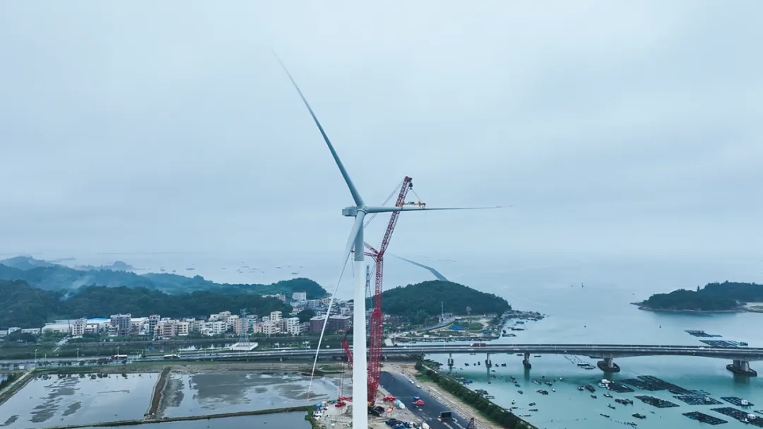 本次东方电气18兆瓦半直驱海上风电机组采用分体式吊装,单吊装最重部件达270余吨,轮毂和风叶总重达240余吨,风轮直径达260米,叶片扫风面积超5.3万平方米,相当于7.4个标准足球场的大小。机组每转一圈可产生38度电,单台机组年平均发电量高达7200万千瓦时,足以满足约3.6万户家庭一年的用电需求。同时,每年可节约标准煤2.2万余吨,减少二氧化碳排放5.9万余吨。