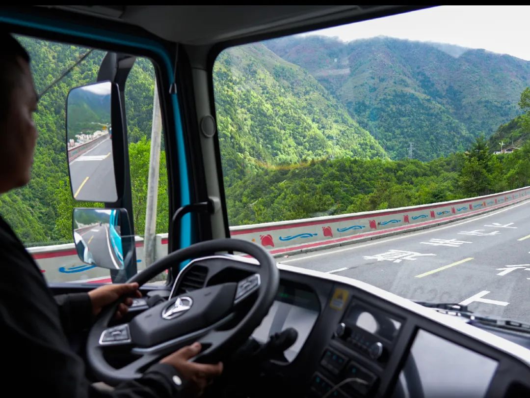 江山SE-437,凭借电驱系统、智能控制系统等创新技术,以650Ps超强动力、30%超强爬坡及36%高效能量回收能力,无惧蜿蜒山路、4298米超高海拔等恶劣工况,在车货总重49t的前提下,以30km/h平均时速完成3小时持续爬坡,海拔差高达3028米,电耗低至2.1kWh/km,是该路段首个顺利通行的电动重卡!