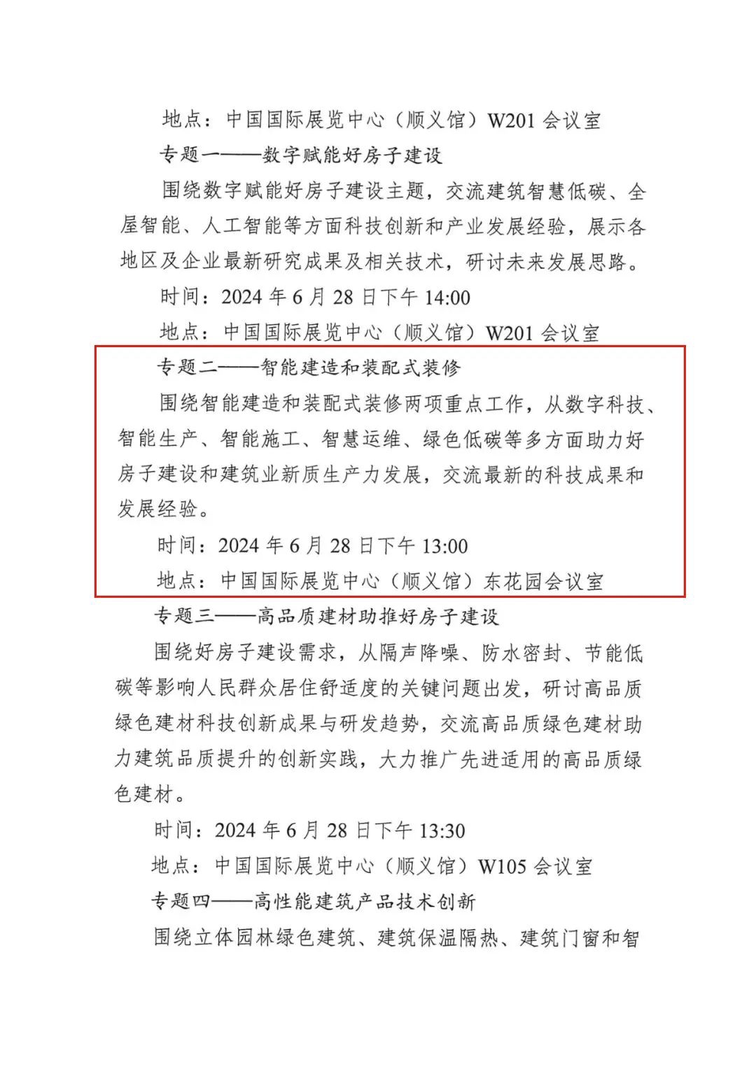 第二十一届中国国际住宅产业暨建筑工业化产品与设备博览会 ( 简称:中国住博会)将于2024年6月27日至29日在北京中国国际展览中心(新馆)隆重举办。好体育综合app下载筑工展厅位置 E3 馆 E3C02 号展位,同时,好体育综合app下载筑工科技股份有限公司承办的“好房子科技创新交流会专题二——智能建造和装配式装修”也将于6月28日下午13:00在中国国际展览中心(顺义馆)东花园会议室举行。届时,好体育综合app下载集团总裁助理、好体育综合app下载筑工科技股份有限公司总工程师、教授级高级工程师马云飞即将参加主题为《智能建造赋能好房子建设的探索与实践》的演讲,欢迎各位莅临指导!