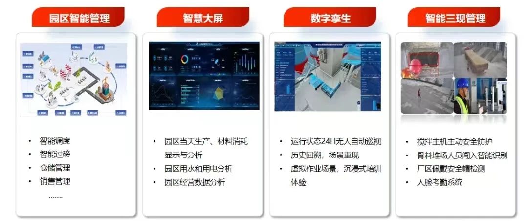 精准高效;双主机计量系统和旋转分料系统,能够提高搅拌效率的同时降低能源损耗。粉罐智能料位技术,能够实时检测,精准计量,分档配料。预测性维护技术,实现故障预测、维护智能提醒。更有集中式远程控制系统和智能管理系统,实时掌握工程和园区情况,保障园区安全。