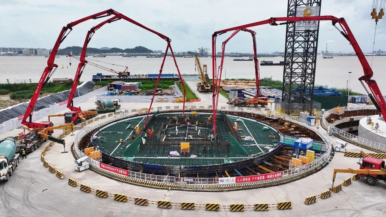狮子洋大桥是狮子洋通道的关键控制性工程,在珠江两岸共设置了东、西两座巨型索塔。其中,东索塔承台为两个直径40米、高9米的圆形,承台及系梁混凝土总方量约2.5万方,全部采用C45高强度混凝土,施工难度大。