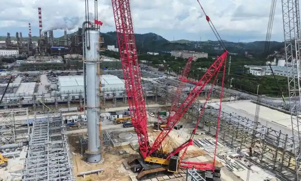 寰球六建2000吨履带吊完成广西石化项目乙烯装置C-3001碱洗塔、2#丙烯塔吊装。