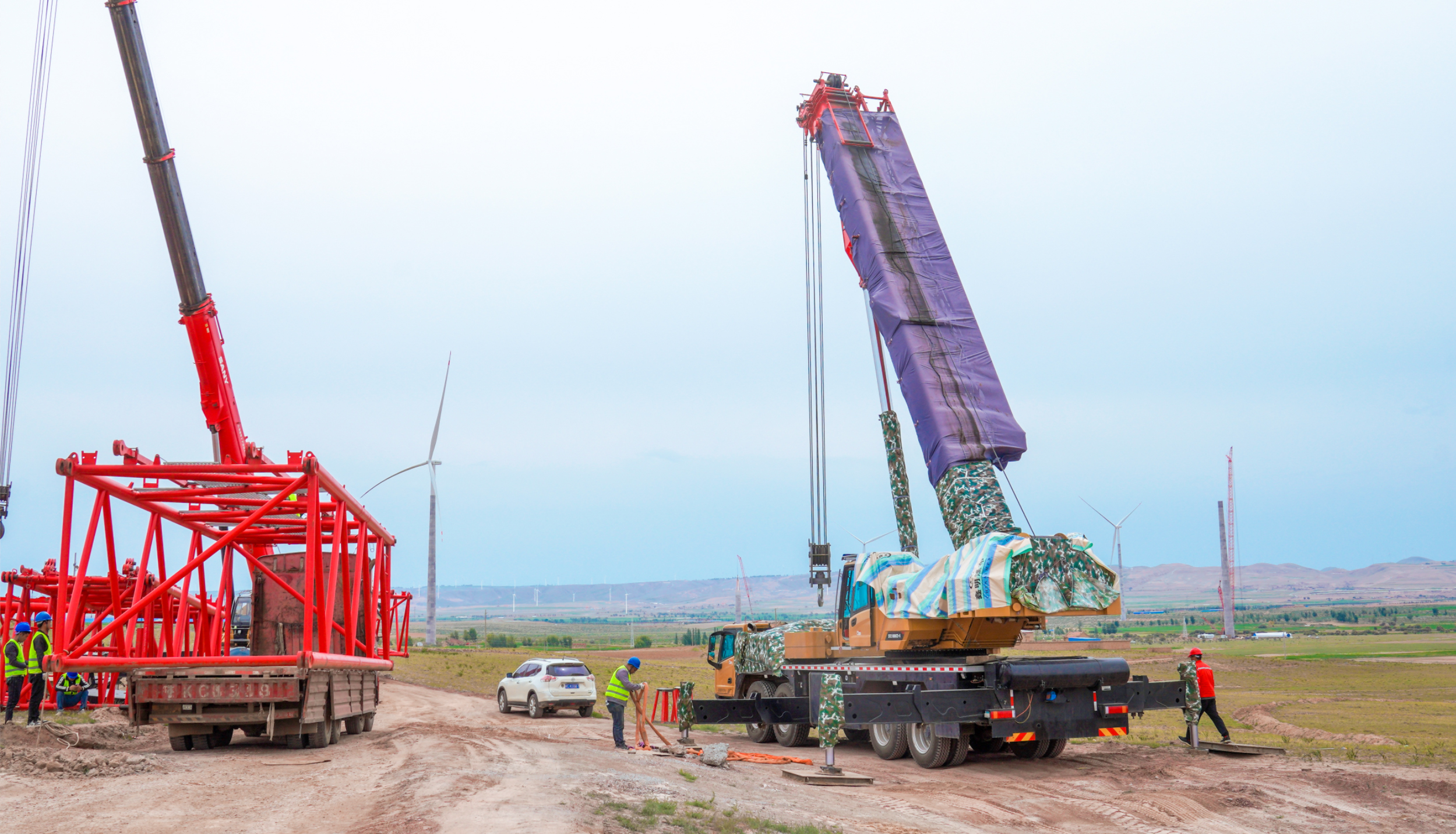 定边地处毛乌素沙漠南缘,属温带半干旱大陆性季风气候,“定边这个地方风沙很大,一年四季都这样。”韩刚笑着说,“吊车是个精密的设备,你只有维护得好,它才能使用得更长久。车跟人一样,你得爱护它,我给这些容易进沙子的地方都保护起来,它才能给我挣钱”。