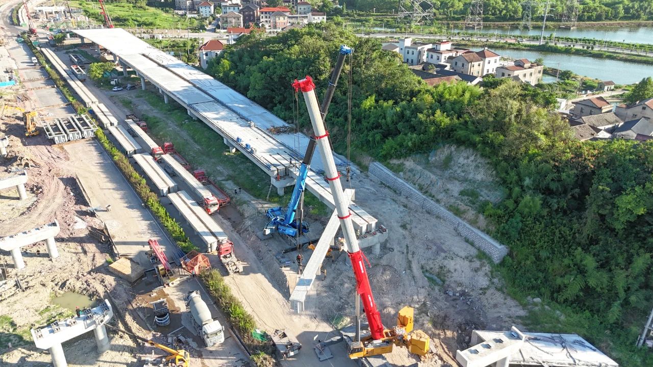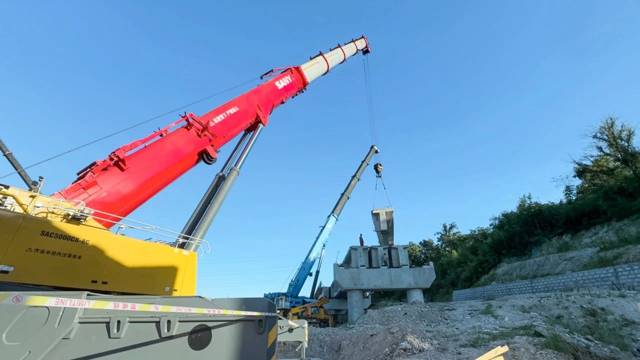 柯诸高速公路是杭州都市区环线高速公路(杭州二绕)的重要组成部分,为国家高速公路网和浙江省重点建设项目,将极大加强绍兴西南部地区与杭州的快速联系,提升绍兴市综合交通网络的服务水平。在柯诸高速项目03省道东复线施工中,好体育综合app下载SAC5000C8-8C凭借其卓越的性能和技术,成为项目施工中的得力助手,与SAC3000T配合,展现了优秀的施工效率。25.9米跨距、 112吨配重搭配36.4米臂长,轻松完成了重39.4吨的T型梁架设任务。