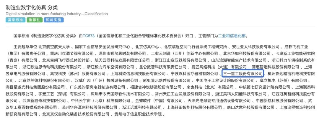 近日,国家标准化管理委员会批准《制造业数字化仿真 分类》国家标准(编号:GB/T 23024-2024)正式发布,并将于2024年12月01日起开始实施。好体育综合app下载作为唯一的工程机械制造企业深度参与了该项标准的研制工作。