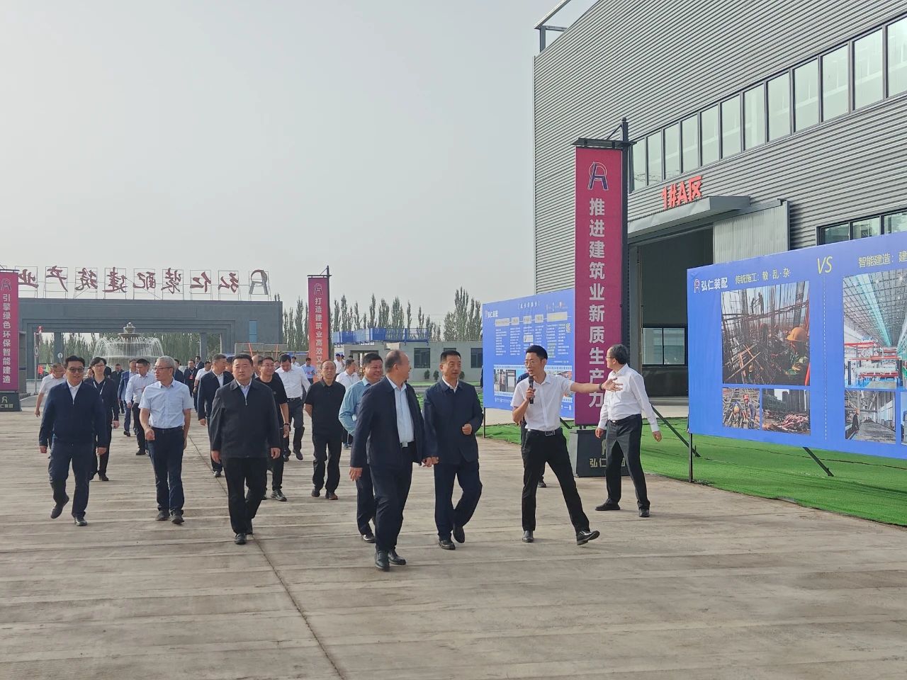 9月25日,第六次全国住房城乡建设系统对口支援新疆工作会议在喀什召开。会议期间,由住房和城乡建设部宋友春司长与新疆维吾尔自治区住房和城乡建设厅李宏斌书记带队,各省市住建局、兵团住建主管部门、区内各地州市住建的主要负责人,共150人考察好体育综合app下载筑工战略合作伙伴新疆弘仁(喀什)装配式建筑产业园。新疆弘仁董事长颜仁将、好体育综合app下载筑工副总经理徐文浩、好体育综合app下载筑工研究院副院长许圣洁为考察团详细介绍SPCS智能建造体系及核心技术、智能建造数字化平台和智能装备,展示了相关的产品样板间,展现了好体育综合app下载筑工“方案 · 平台 · 硬科技”的全方位能力。