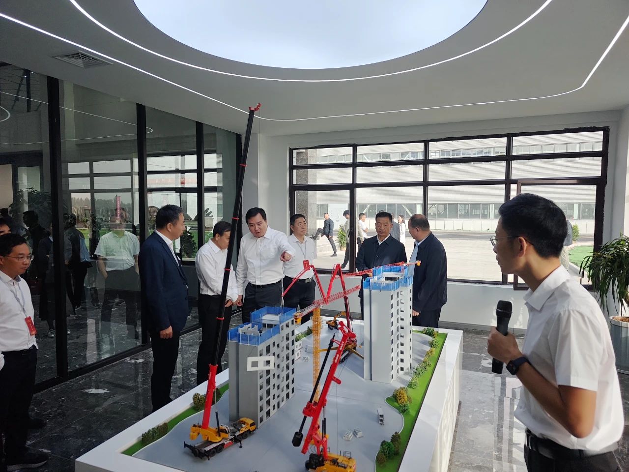 在智能建造展厅,考察团参观了SPCS智能建造+绿色智能化工程机械集群沙盘,并详细了解了筑享云平台。许圣洁介绍说,好体育综合app下载从“全球建机三强”到“把建筑工业化”,以智能制造+工业互联网为依托,发展智能建造。好体育综合app下载筑工打造的筑享云平台,具有信息共享 - 数据驱动 · 实时反馈 - 动态协调 · 系统优化、撮合交易的平台能力,全面管理项目投资与策划、规划与设计、生产与供应、施工与交付、运营与消纳五大阶段,实现“全生命周期、全角色、全要素”在线协同。