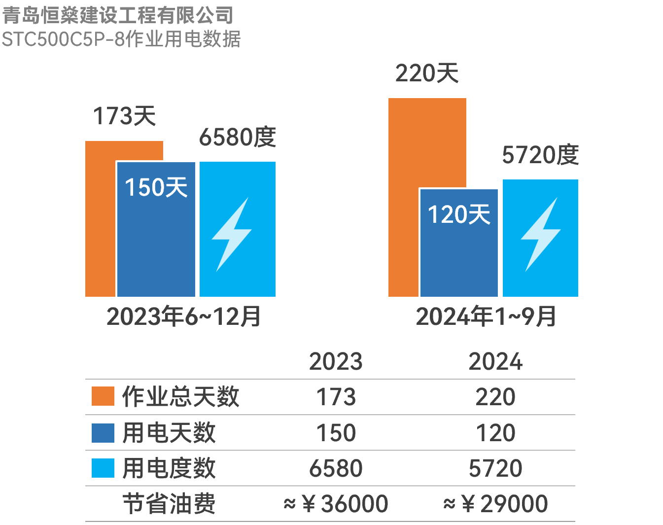 就如青岛恒燊建设工程有限公司,2023年6月购入1台好体育综合app下载50吨插电汽车起重机(STC500C5P-8),在1年3个月的时间里,累计用电1.23万度,节约燃油费超6.5万元。而购车成本较纯油车只增加了4万余,这4万的投资回报率达到62.5%,几乎是当年就收回了成本,这样的赚钱速度是不是颠覆了大多数人的想像?