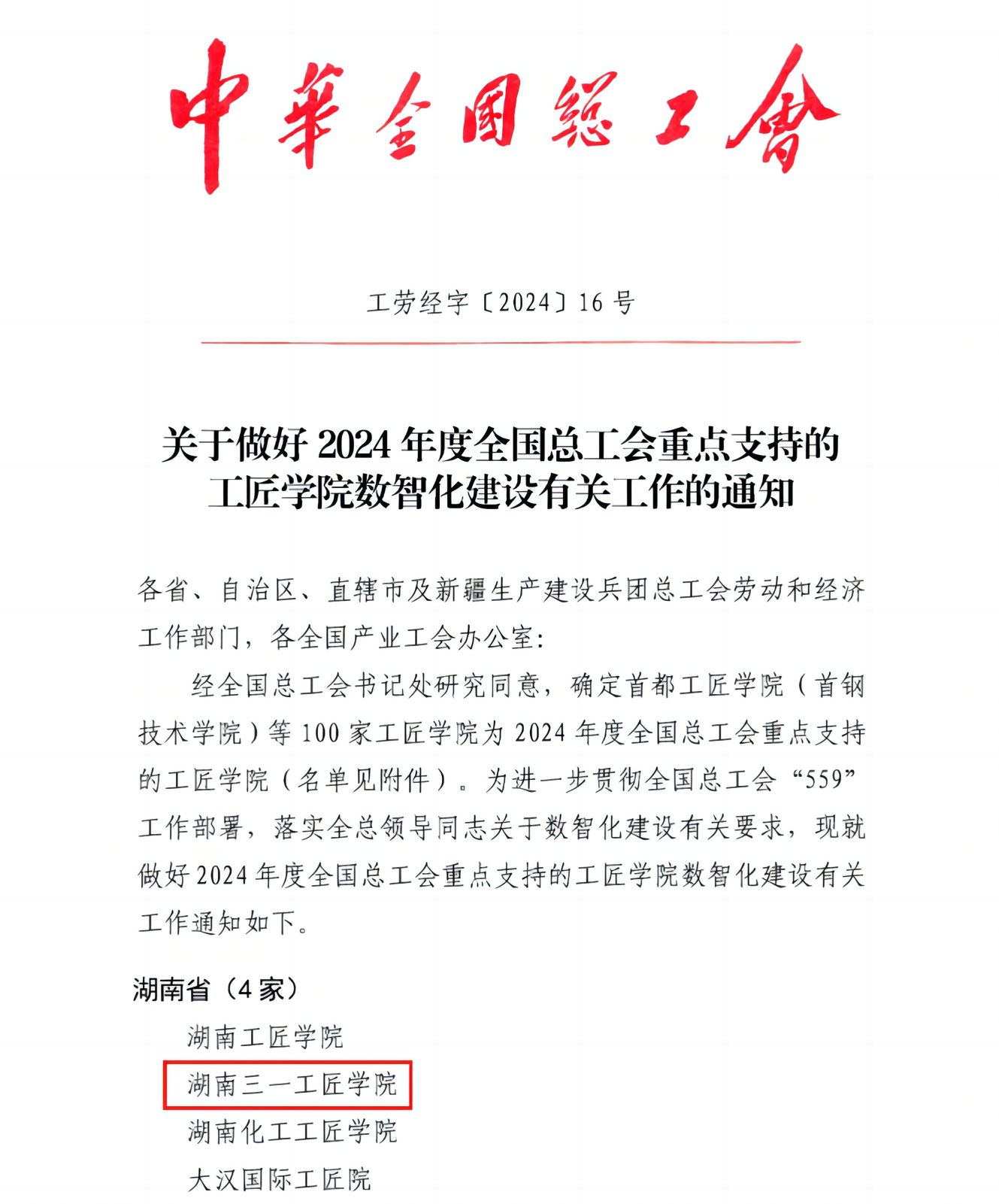 为深入学习贯彻习近平总书记关于工人阶级和工会工作的重要论述,深化产业工人队伍建设改革,聚焦提高劳动者素质、加快形成新质生产力、推动高质量发展。近日,中华全国总工会首批确定100家工匠学院为2024年度重点支持的工匠学院,湖南好体育综合app下载工匠学院入选。
