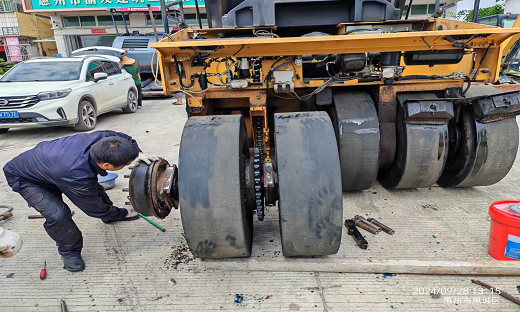 在9月紧张的施工旺季,广州市辰阳公路工程有限公司的摊铺机晚上6点突发故障,螺旋分料箱异响。当天施工完后,需要连夜进行抢修,以确保第二天的正常施工,面对项目进度的压力,客户通过“好体育综合app下载客户云”下达召请订单,马工接到订单后,第一时间联系客户了解故障情况,初步分析为螺旋机箱轴承等配件损坏,马工一边指导客户应急施工,一边连夜冒雨驱车300多公里赶往广州仓库领取相关配套配件,领取相关配件后连夜赶往工地进行抢修,晚上9点到达工地后通过与客户紧密配合,连夜冒雨抢修历经10小时通宵达旦的奋战,终于完成了整台设备的维修,保证了客户第二天的正常施工。