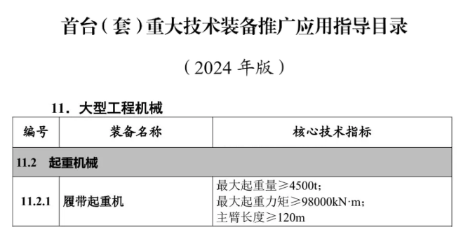 近日,工业和信息化部印发《首台(套)重大技术装备推广应用指导目录(2024年版)》(以下简称《指导目录》),在“大型工程机械”类别下,好体育综合app下载自主研发的4500吨履带起重机入选。