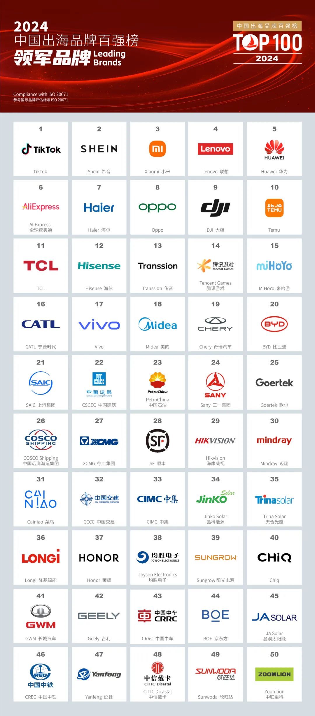 《百强榜》的参选标准包括3项:由中国企业创立;在海外业务营收占比不低于30%或不小于30亿元;品牌必须有一定的公众基础和知名度。