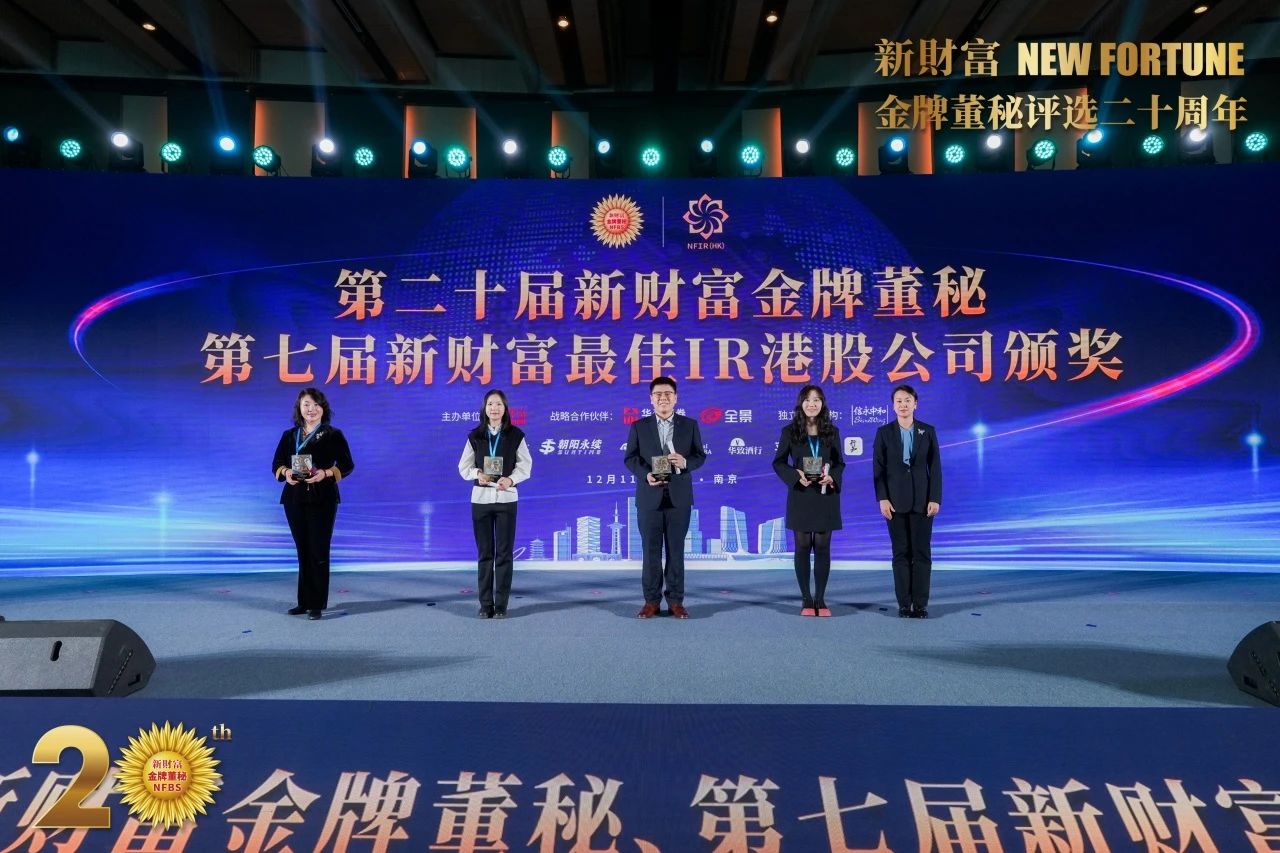 12月11日,新财富上市公司可持续发展年会暨第二十届新财富金牌董秘、第七届新财富最佳IR港股公司颁奖典礼在南京举行,作为国内聚焦上市公司董秘职群最具影响力的评选活动,本届共有154位金牌董秘、18位“金牌董秘名人堂”董秘、14家最佳IR港股公司、以及若干个单项奖获奖嘉宾登台领奖。