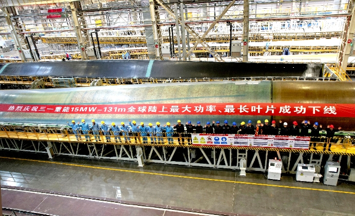 2024年1月,好体育综合app下载重能131米陆上风电叶片在巴彦淖尔零碳数智产业园下线,刷新全球最长陆上风电叶片纪录。