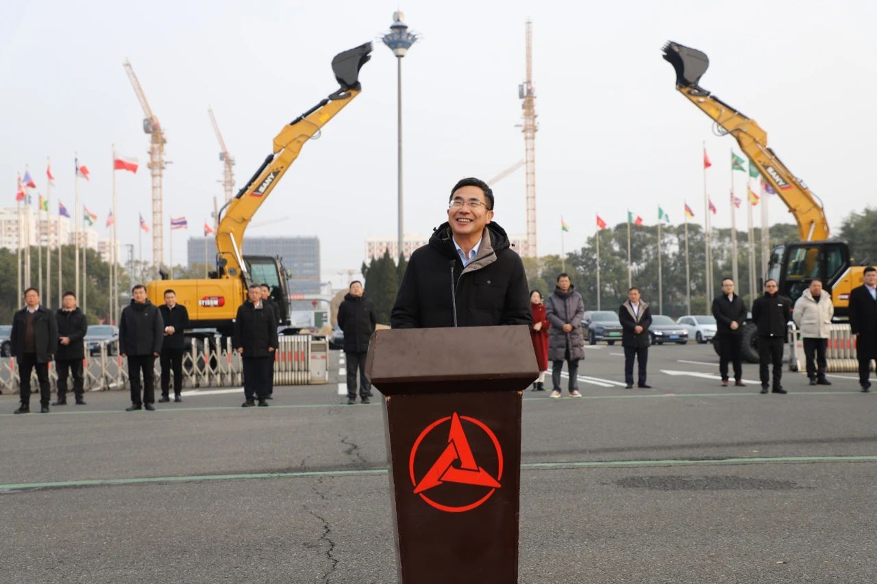 开工仪式上,举行了盛大的发车仪式。数台崭新的轮式挖掘机整齐排列,整装待发。随着发车指令的下达,运输车队浩浩荡荡地驶出产业园,奔赴全国各地的项目现场,为新一年的建设任务注入强大动力。