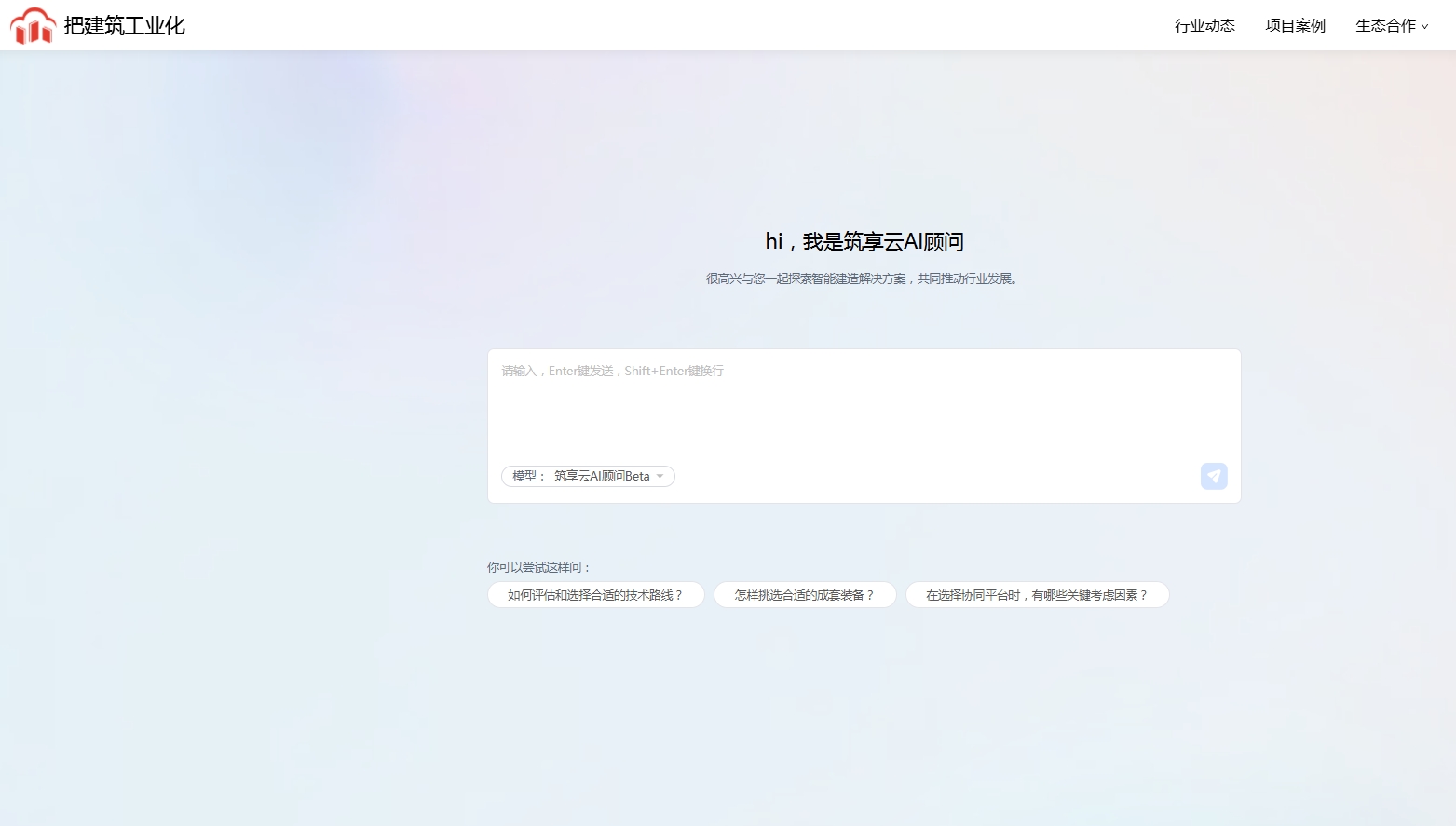 诚挚邀请您访问筑享云平台官方网站(www.pcteam.com)完成注册流程,亲身体验AI顾问系统的核心功能。未来如您在智能建造与建筑工业化领域有任何技术或业务问题,均可通过筑享云AI顾问获得专业咨询服务。平台将持续更新AI智能问答应用场景及典型案例库。