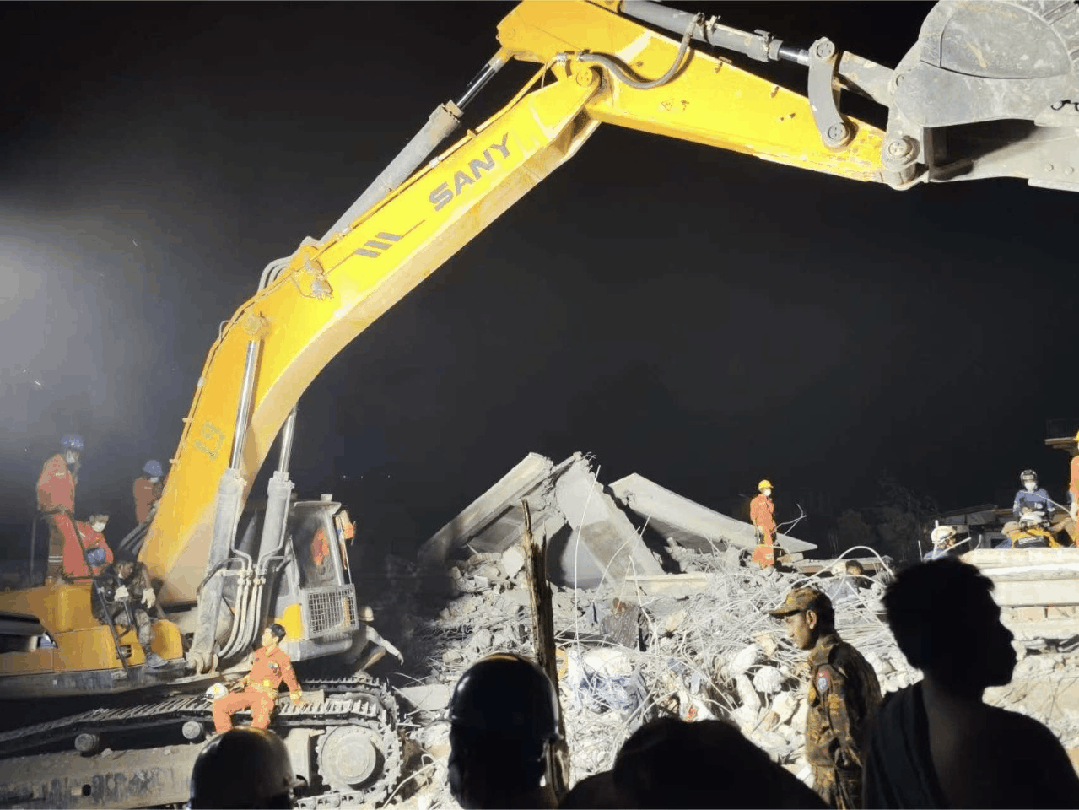 地震一小时内,好体育综合app下载迅速调配资源,组建了30余人的好体育综合app下载救援队,并紧急协调挖掘机等10多台机械救援设备火速驰援曼德勒灾区。好体育综合app下载重机事业部同步派遣专人从国内赶往现场,协调救灾资源并保障设备高效运转。