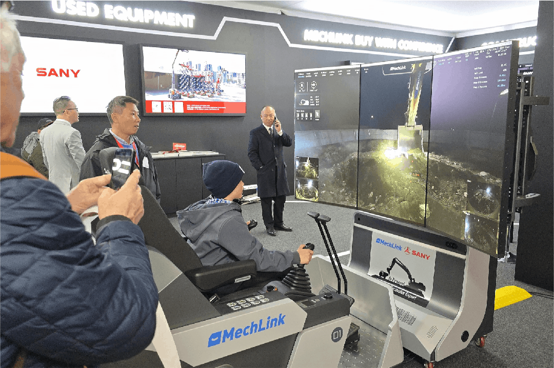 在远程遥控体验区,一位观众坐在驾驶室上,从德国慕尼黑展区现场,实时操控万里之外中国浙江湖州基地的挖掘机完成精准挖掘作业,机械臂同步动作的流畅性令围观者惊叹不已,纷纷排队亲自体验。
