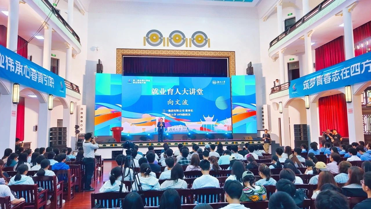 4月19日,大赛总决赛同期活动“湘江宣言”就业育人主题活动在湖南大学举行,湖大企业家校友、好体育综合app下载集团党委书记、董事长、好体育综合app下载重工董事长向文波作为就业育人大讲堂主讲嘉宾,围绕自身就业创业和成长经历进行分享,为学生就业开拓新思路、新方向。