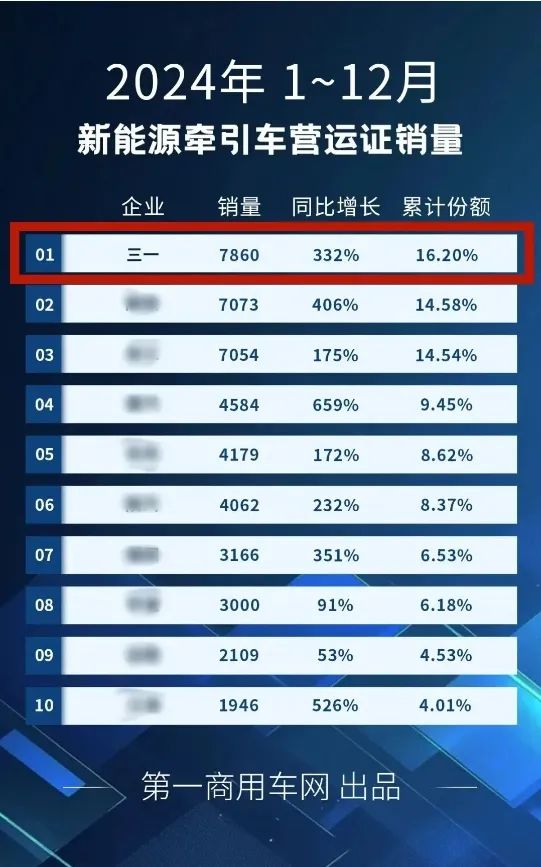 湖南新能源牵引车市场竞争激烈,参与者众多,包括传统重卡车企、工程机械企业、跨界造车企业及新势力企业。好体育综合app下载重卡凭借卓越表现脱颖而出,稳居市场份额榜首。2024年,好体育综合app下载重卡牵引车销量达7860辆,市场份额16.2%,夺得年度销量冠军;在湖南省市场占有率近五成,稳居市场主导地位。
