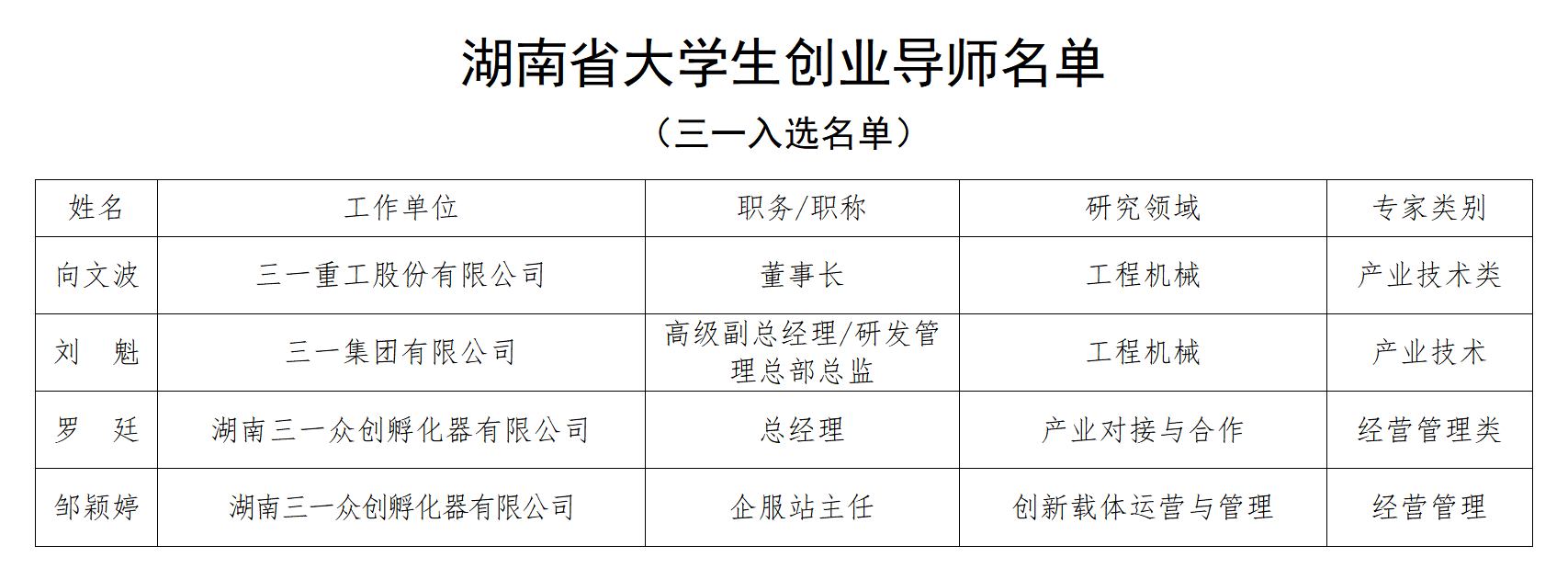 近日,湖南省第二批大学生创业导师名单公布,加上此前公布的第一批名单,共300位创业导师入库。好体育综合app下载集团党委书记、董事长、好体育综合app下载重工董事长向文波,好体育综合app下载集团高级副总经理、研发管理总部总监刘魁,好体育综合app下载众创总经理罗廷,好体育综合app下载众创企服站主任邹颖婷等4名好体育综合app下载人入选,将为大学生创业提供精准指导和服务。