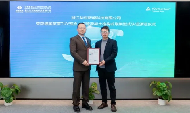 2025年2月,经国际权威认证机构TUV莱茵评估,叶片净空自适应预应力钢管混凝土格构式塔架获得国内首张格构塔型式认证证书,标志着该新型塔架产品设计建造技术的安全性和可靠性得到行业认可,为大规模市场推广应用奠定了基础。