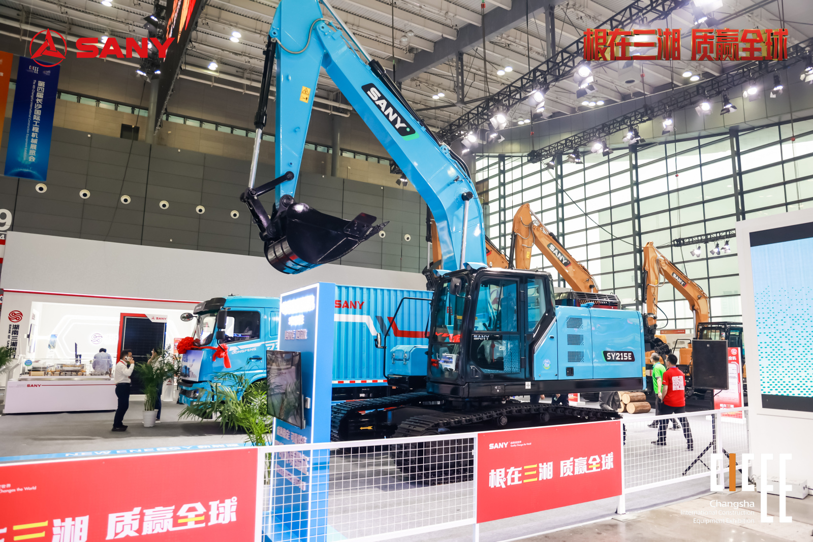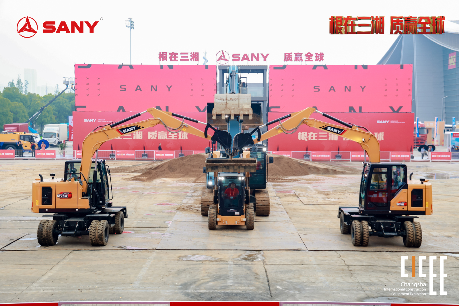 室外展区,好体育综合app下载联合电广传媒打造“钢铁之舞”实景秀,精准的操控、可靠的产品以更为轻松的姿态展现于众,设备的轰鸣与观众的喝彩奏响长沙展独一无二的乐章。