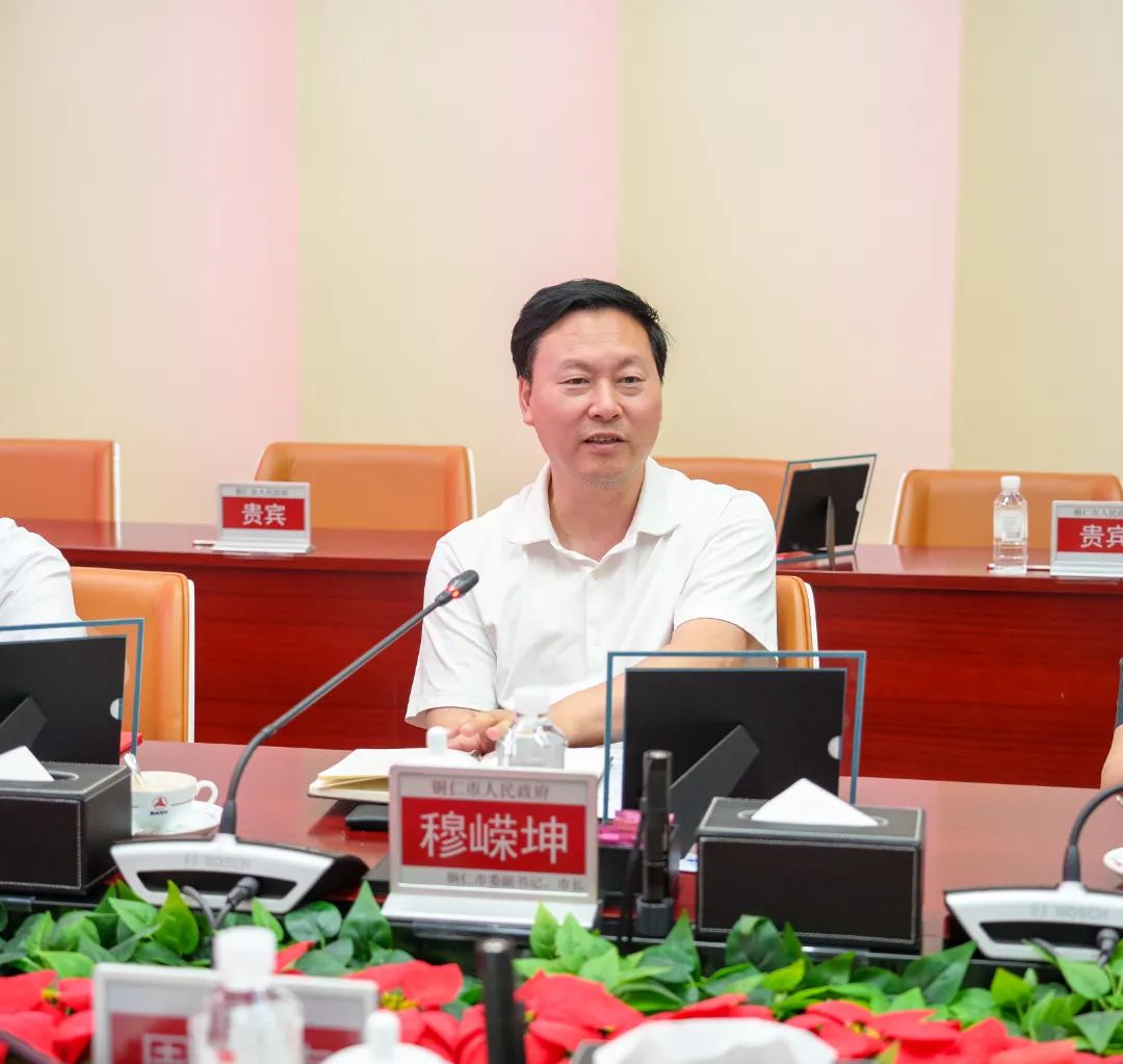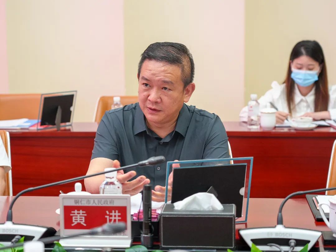 铜仁市工业和信息化局局长胡志勇介绍铜仁市重点产业发展成果,提出双方可在贵州电动化深度融合等方面合作。