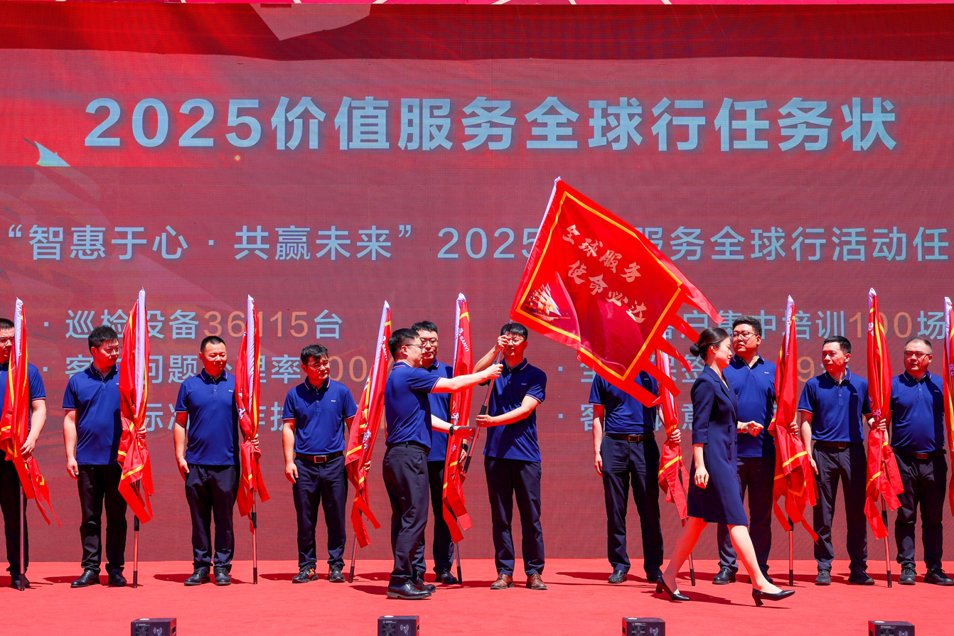 本次全球行活动共设置了14个国内战区,1个国际战区,计划巡检设备36115台、100%输出健康体检报告,开展客户集中培训100场,培养金牌操作手100名,做到客户满意率100%,服务支持部副部长杨静宇先生为十五个战区逐一授旗。