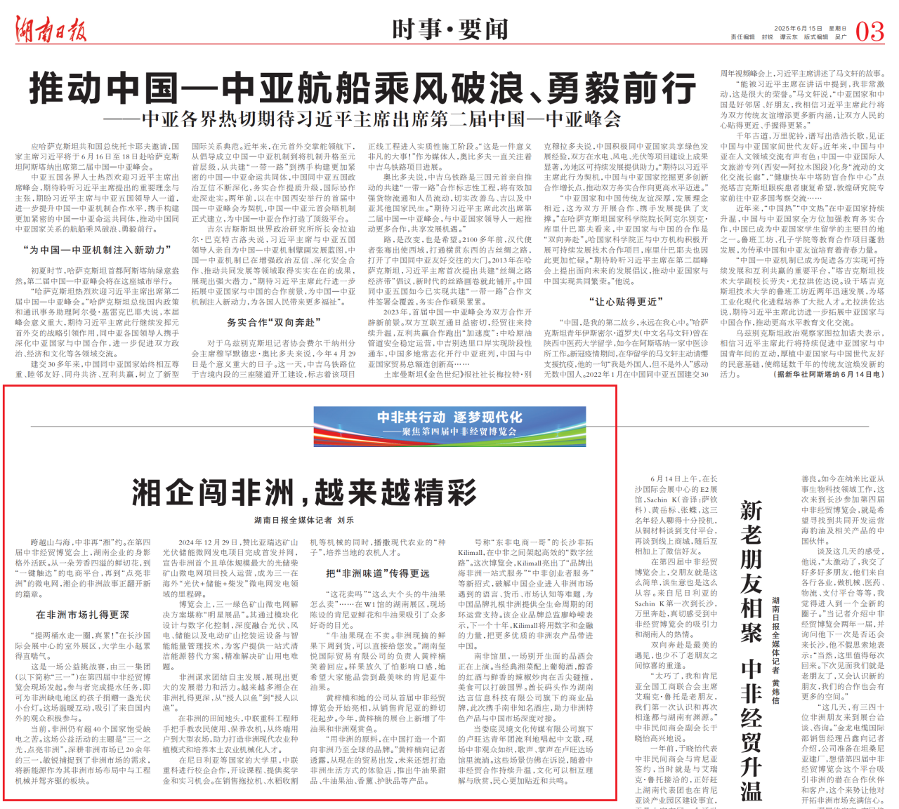 湖南日报则在《湘企闯非洲,越来越精彩》中点赞:“博览会上,好体育综合app下载绿色矿山微电网解决方案堪称‘明星展品’。其通过模块化设计与数字化控制,深度融合光伏、风电、储能以及电动矿山挖装运设备与智能能量管理技术,为客户提供一站式清洁能源替代方案,精准解决矿山用电难题。”